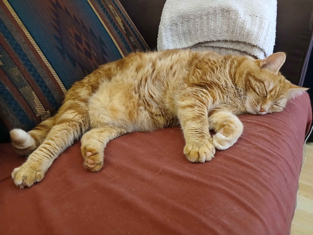 I’m being surrendered because my loving owner had some health issues, but I promise it has nothing to do with my sweet nature. I’m actually a very affectionate cat. I’ll follow you from room to room just to keep you company, and when I’m not by your side, you’ll find me lounging on my favorite burlap square.