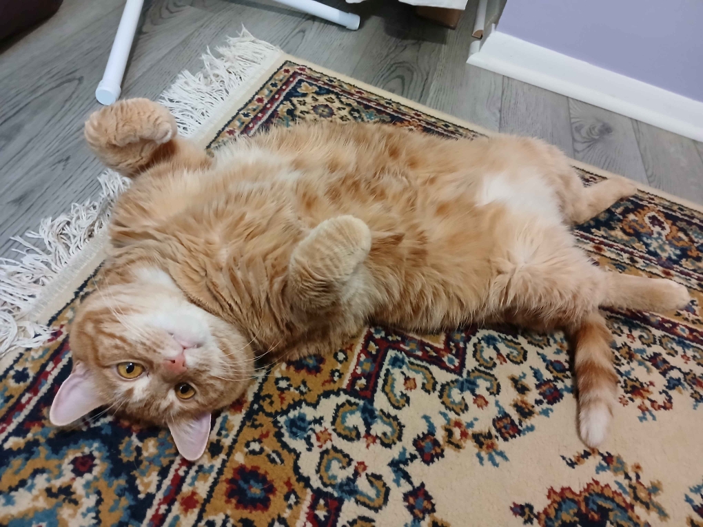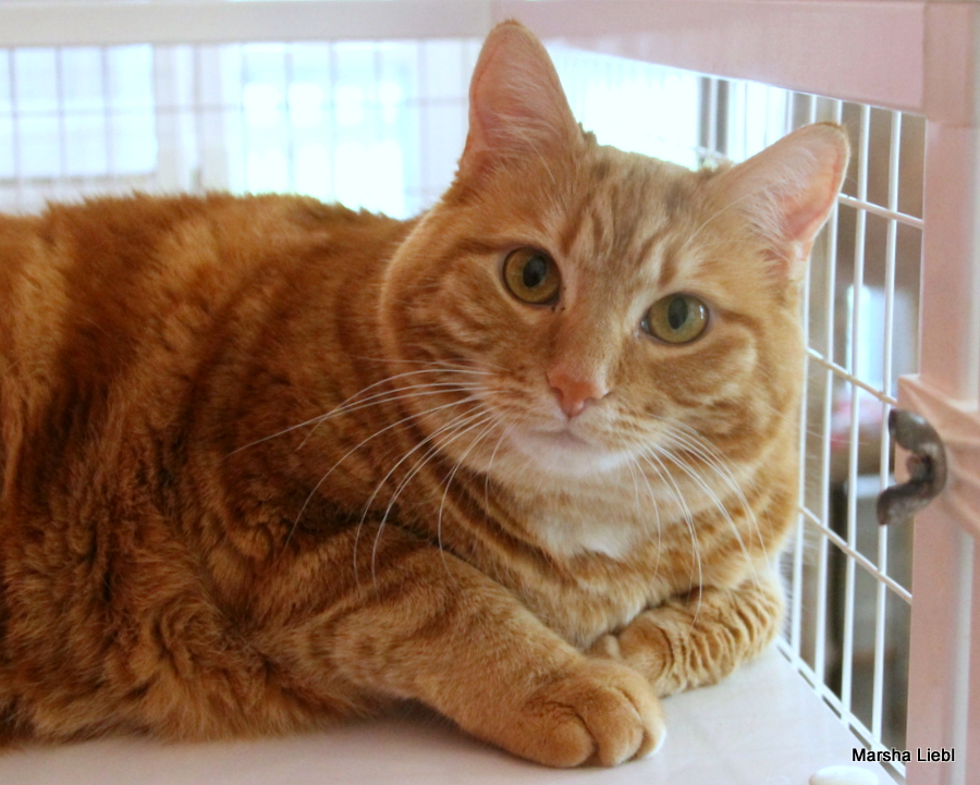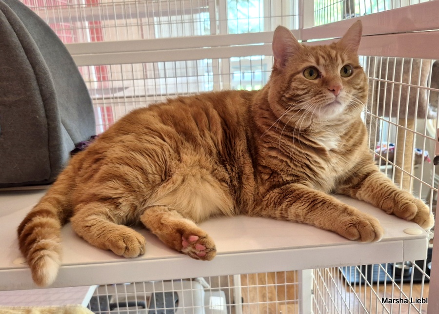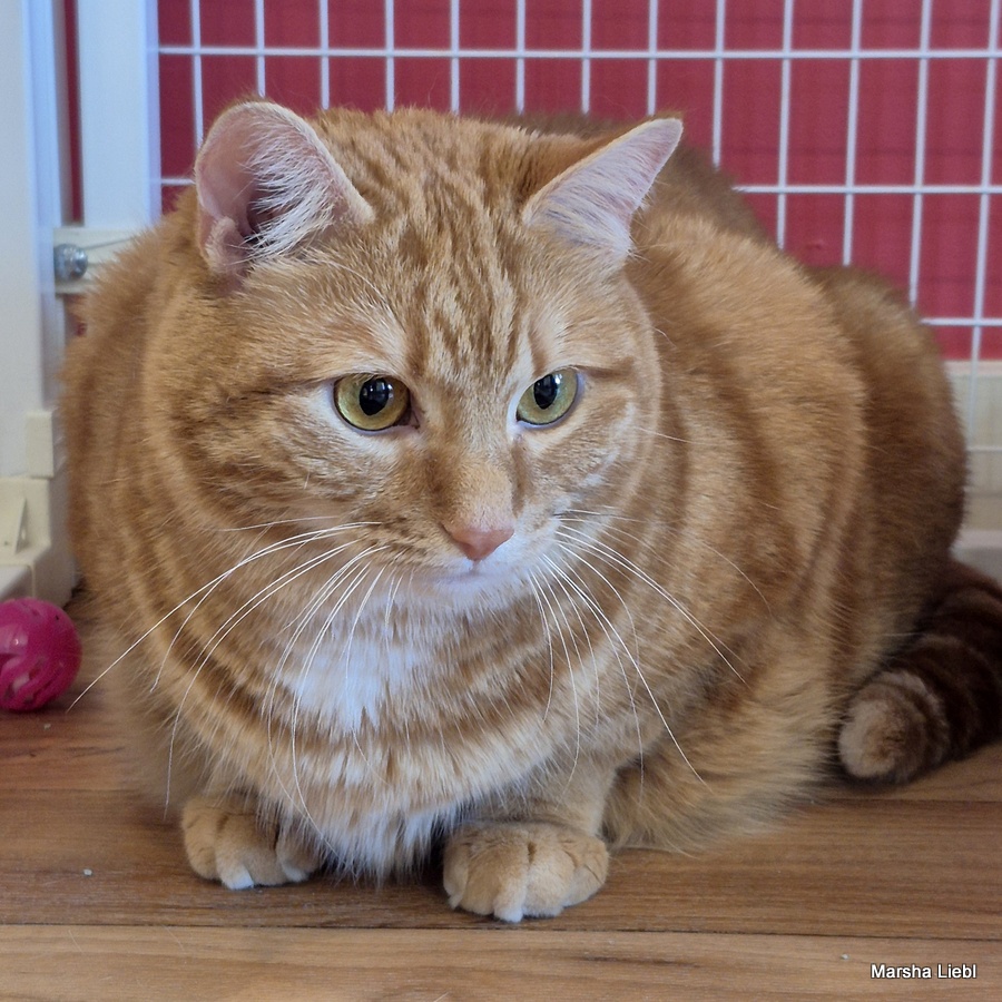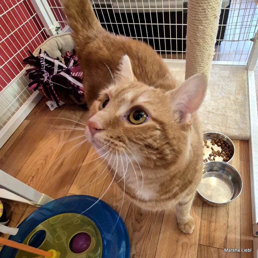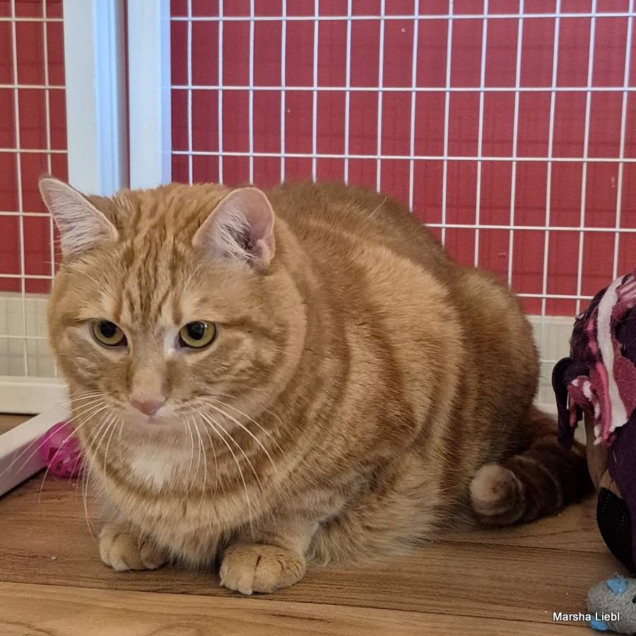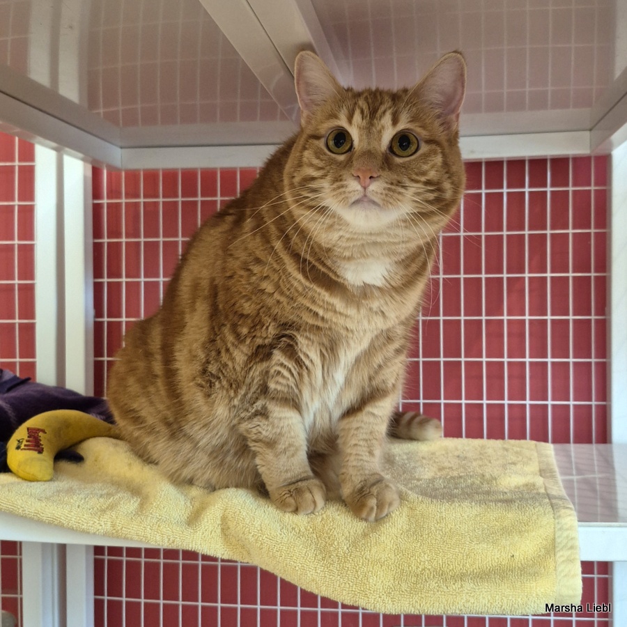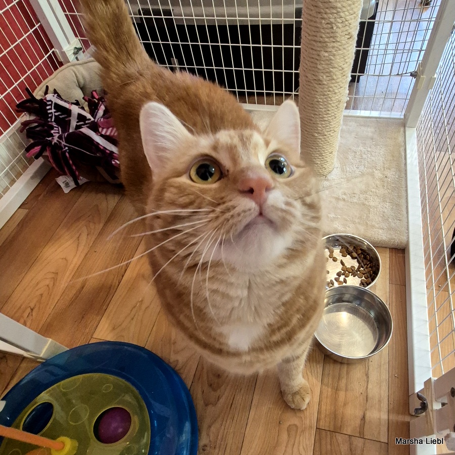 Hi, my name is Bootsie! I’m a 3-year-old orange and white tabby girl with a big heart—and at 14 pounds, a bit of a big presence too. My name has a fun story: my original owner named me Boots after the swashbuckling cat in Shrek, but since that Boots was a boy, she decided to make it my own—so I became Bootsie!