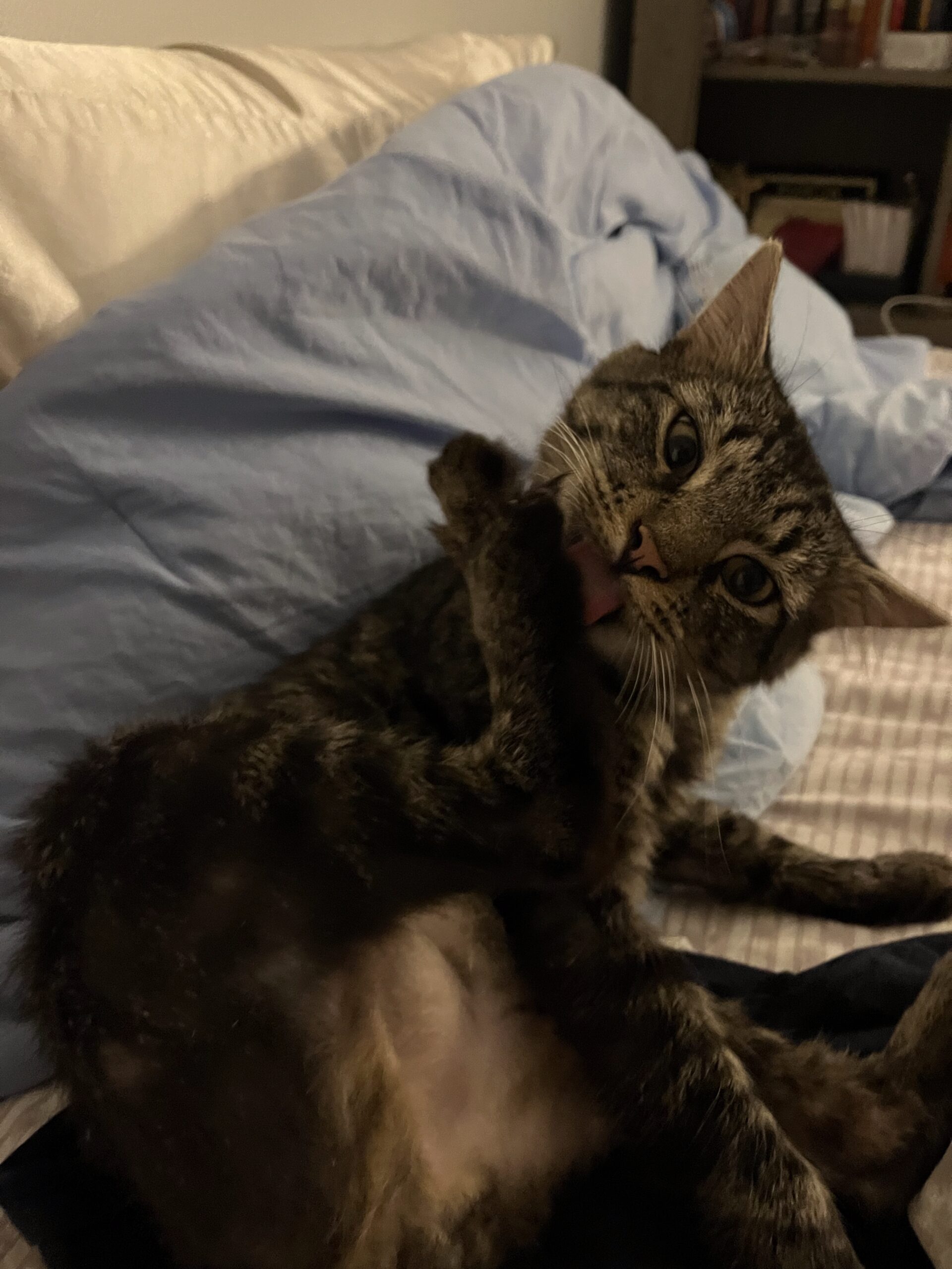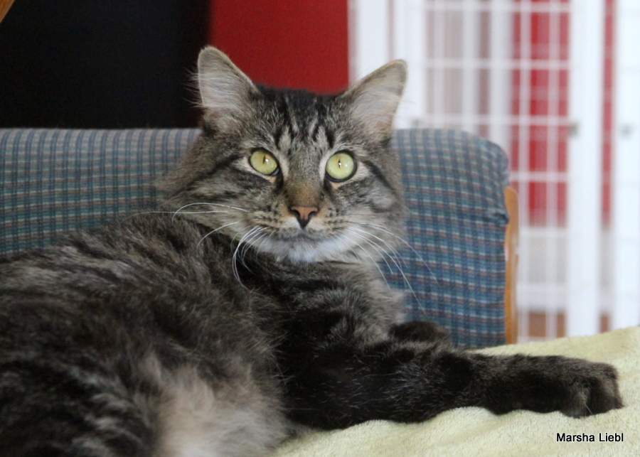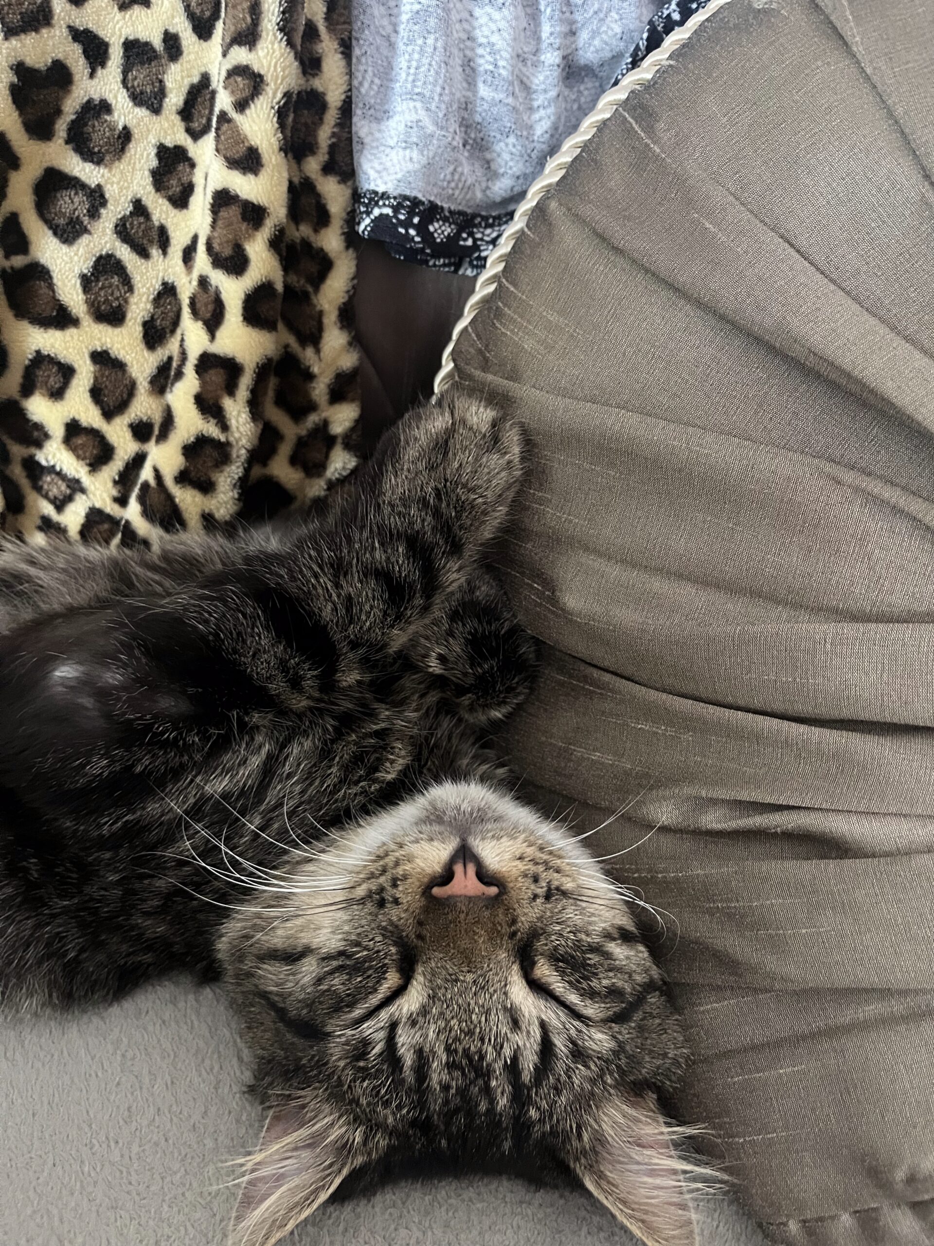 I really do love being around people. I’m not just a “one person” cat—I enjoy company and might even curl up in bed with you. That said, I’ve got a few quirks: I mostly only like pets on my head and if I signal I’m not in the mood, please pay attention to me, I also get a little impatient around mealtime and may let you know with gentle ankle prodding if the food is taking too long.
