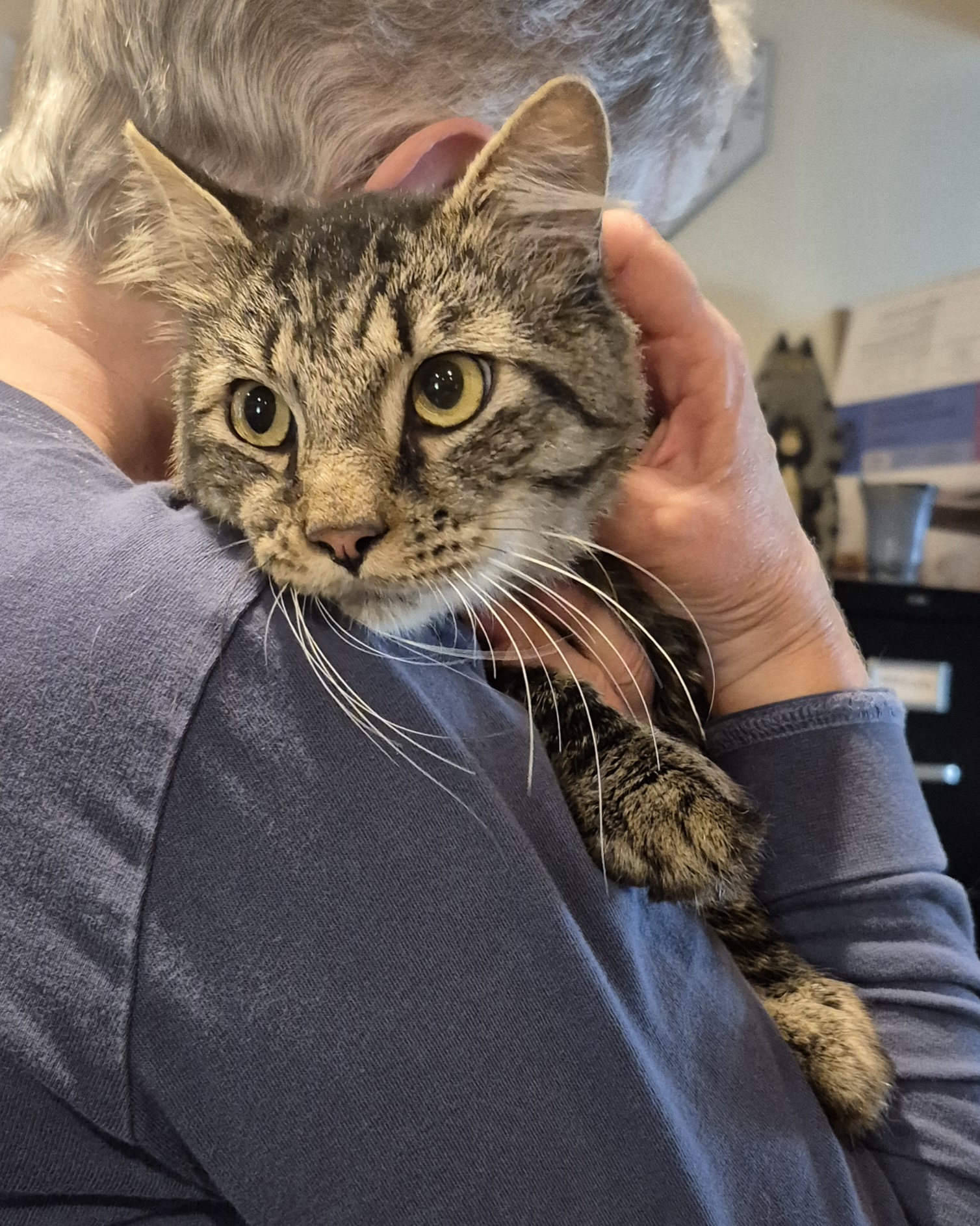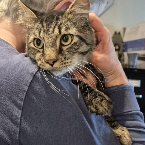 Hi there, I’m Jude—a 2-year-old brown striped tabby with short, soft fur and a gentle soul. Life hasn’t been the easiest lately. I was found wandering outside and brought to a county shelter because the person who found me couldn’t keep me. People think I used to be an indoor kitty and I think I’d really like to go back to having a safe, cozy home of my own.