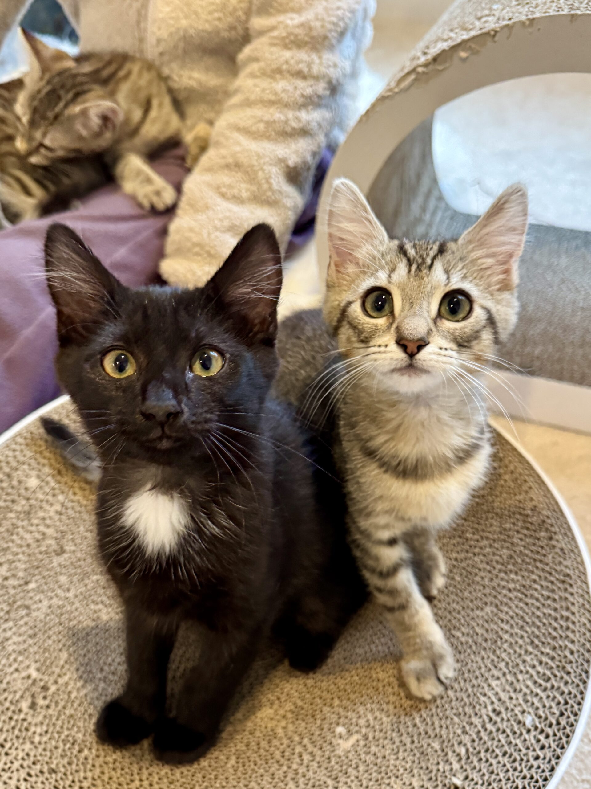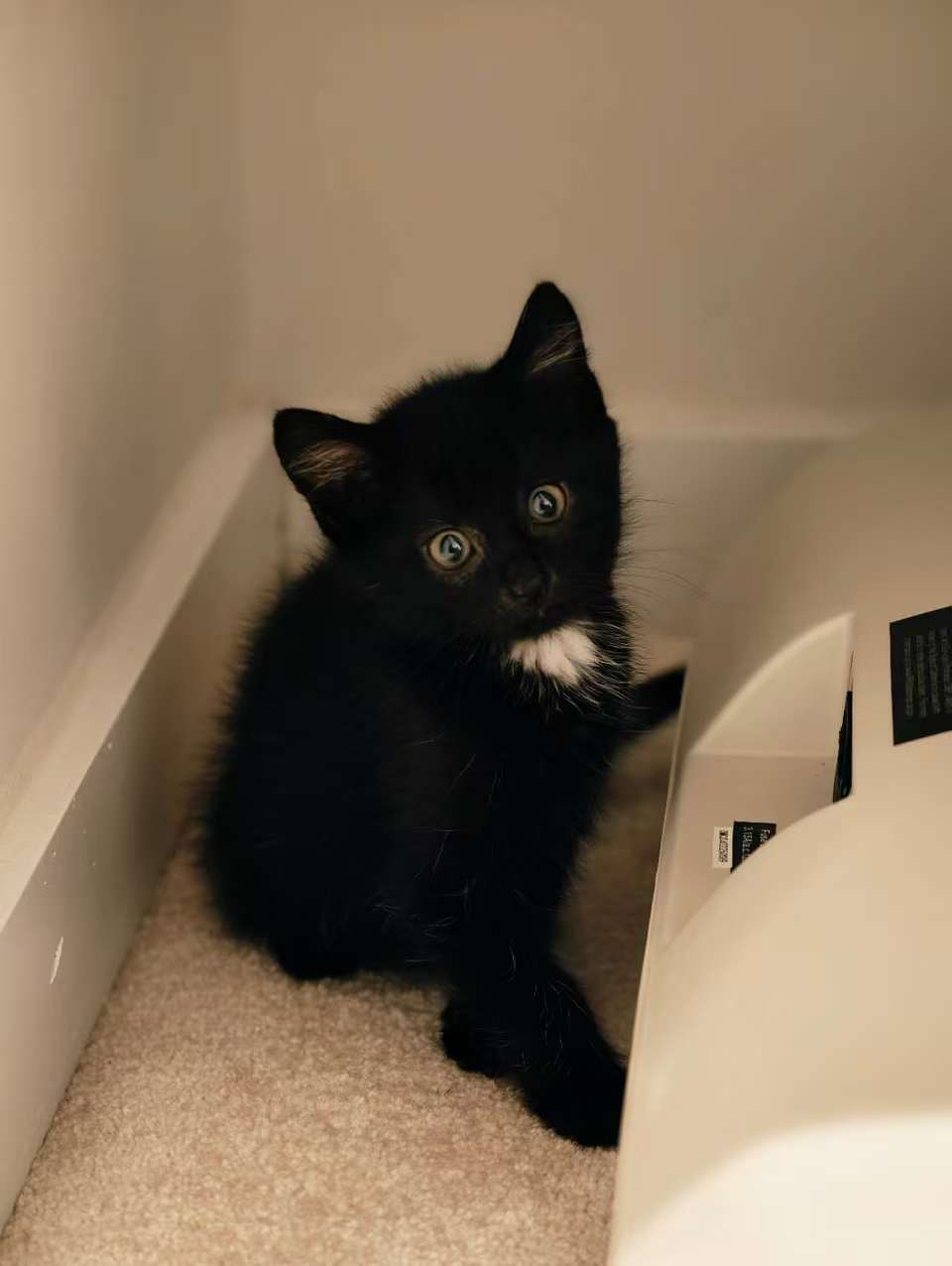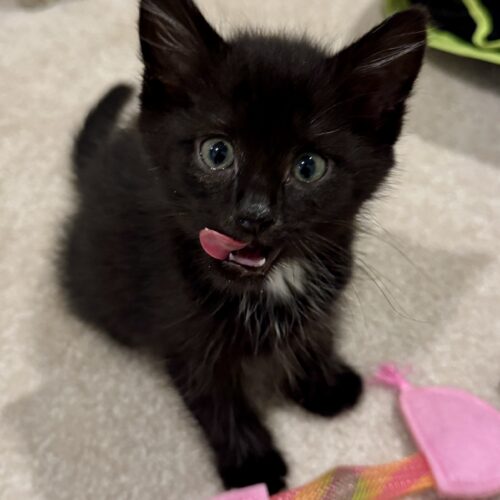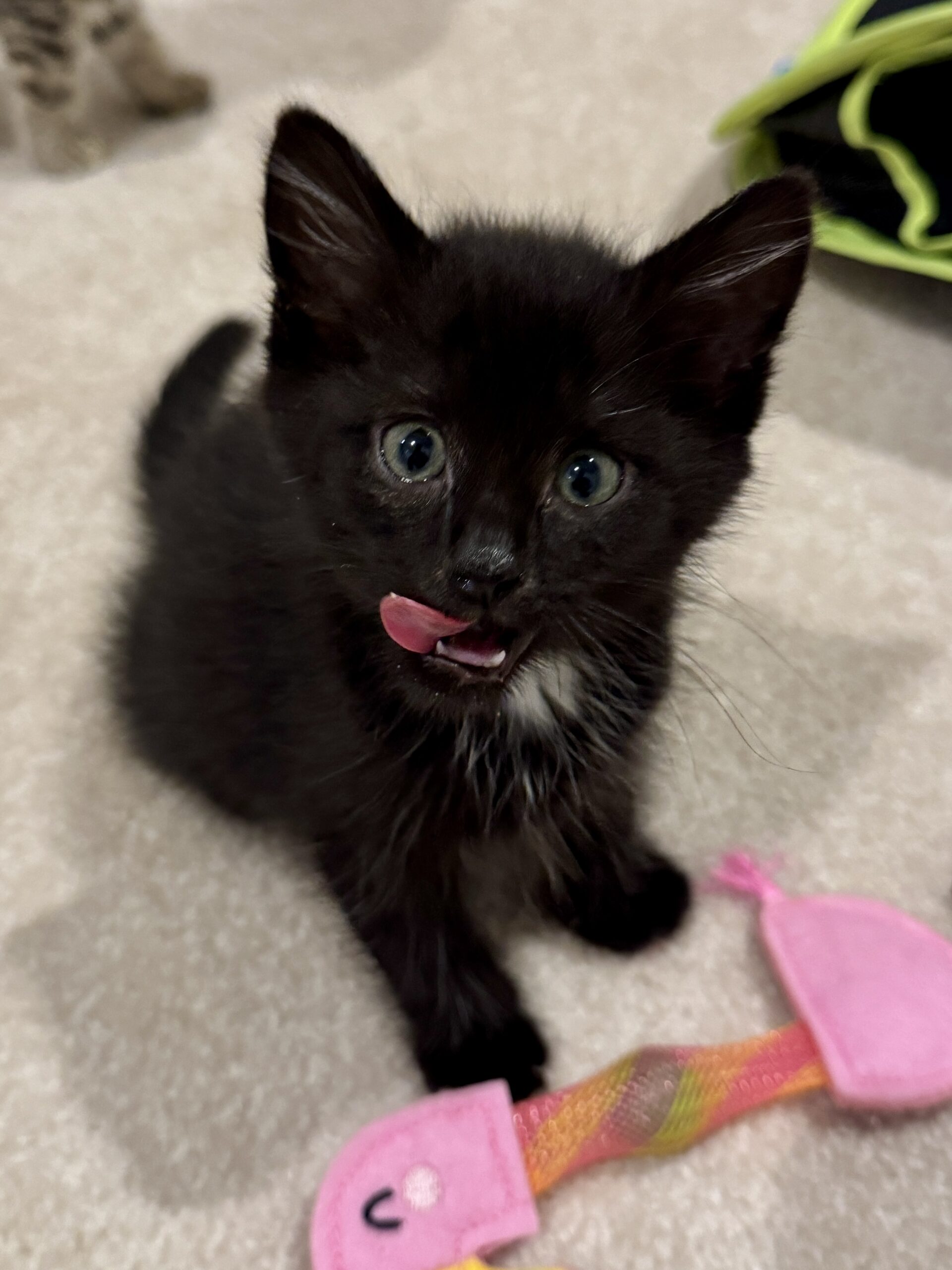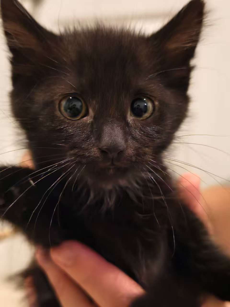 Nova is an incredibly lively and playful black kitten who loves to interact with every cat around her. She is extremely affectionate and adores people—whenever she catches your eye, no matter what she’s doing, she will immediately stop and come over to you. Just a simple thigh pat is enough for her to jump up and keep you company. When you gently stroke her, she purrs contentedly, showing just how much she enjoys your attention. Nova is the most social and energetic kitten of the litter, full of playful energy and always ready for fun. If you’re looking for a lively, loving companion who’s full of personality and always eager to connect, Nova is the perfect kitty for you.