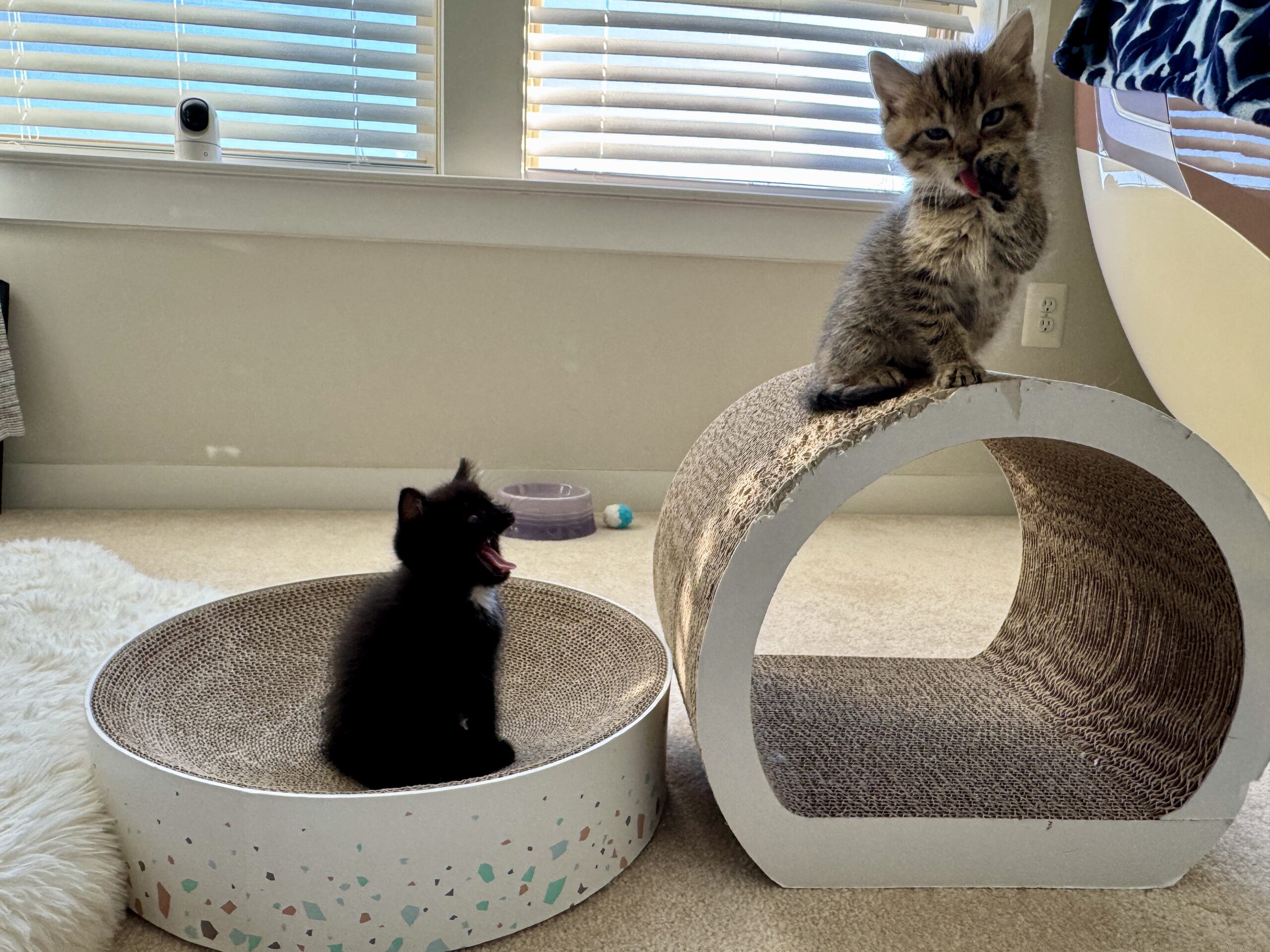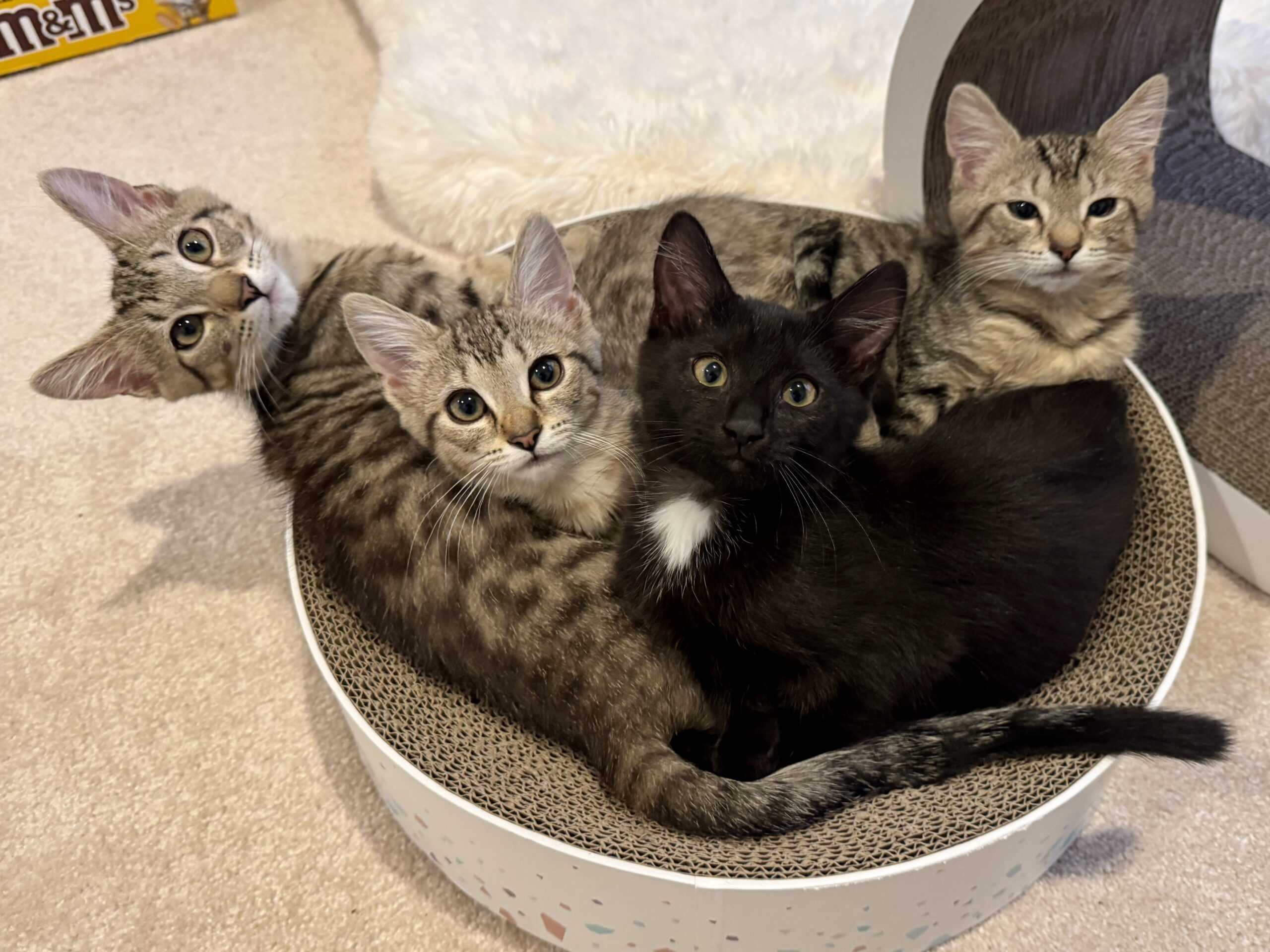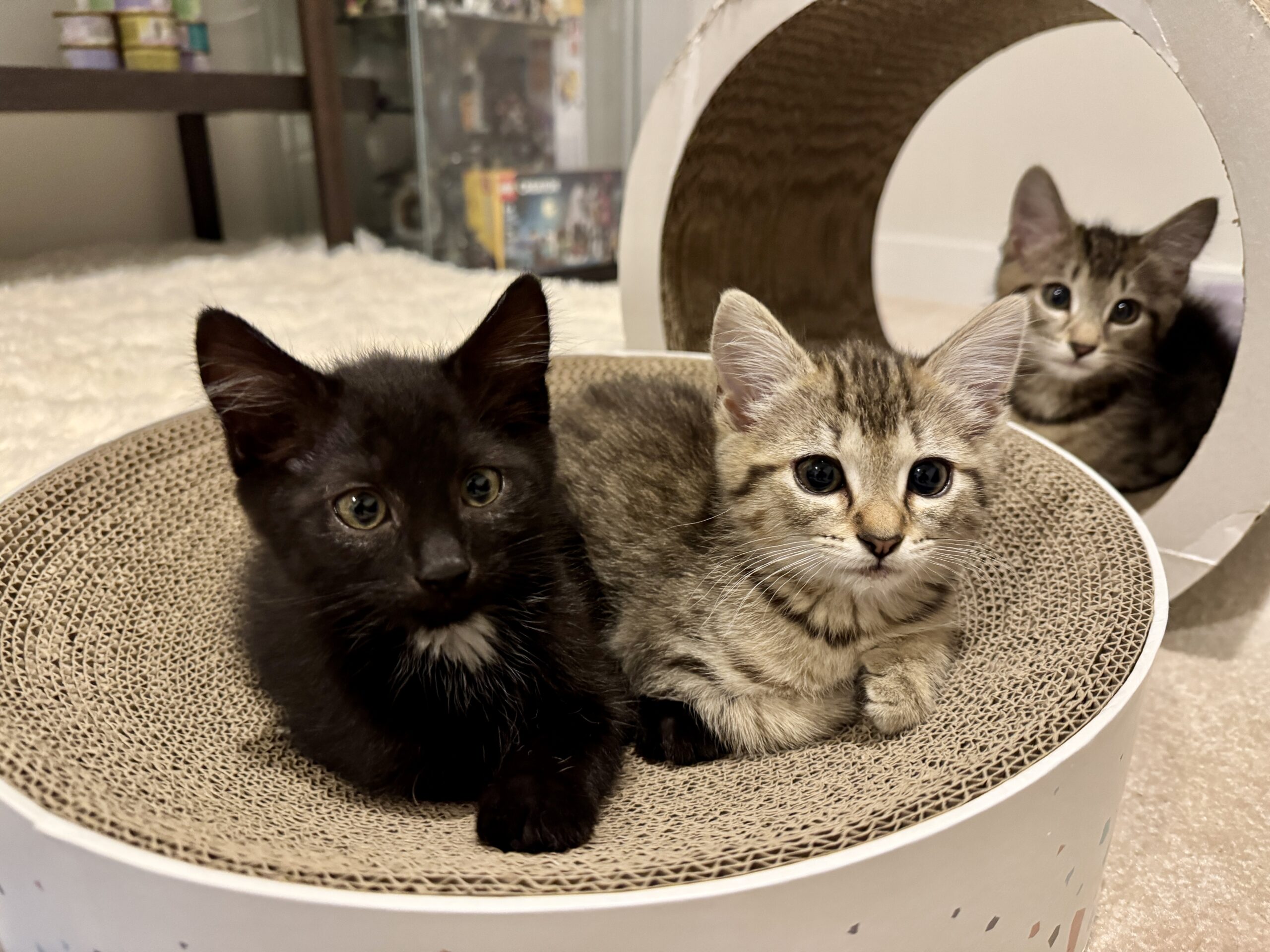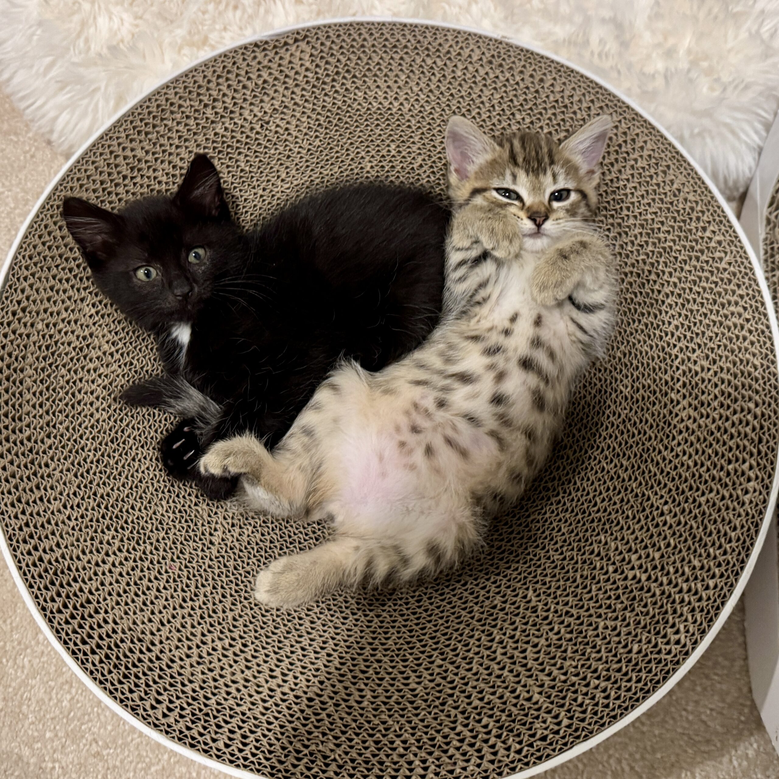 Nova is an incredibly lively and playful black kitten who loves to interact with every cat around her. She is extremely affectionate and adores people—whenever she catches your eye, no matter what she’s doing, she will immediately stop and come over to you. Just a simple thigh pat is enough for her to jump up and keep you company. When you gently stroke her, she purrs contentedly, showing just how much she enjoys your attention. Nova is the most social and energetic kitten of the litter, full of playful energy and always ready for fun. If you’re looking for a lively, loving companion who’s full of personality and always eager to connect, Nova is the perfect kitty for you.