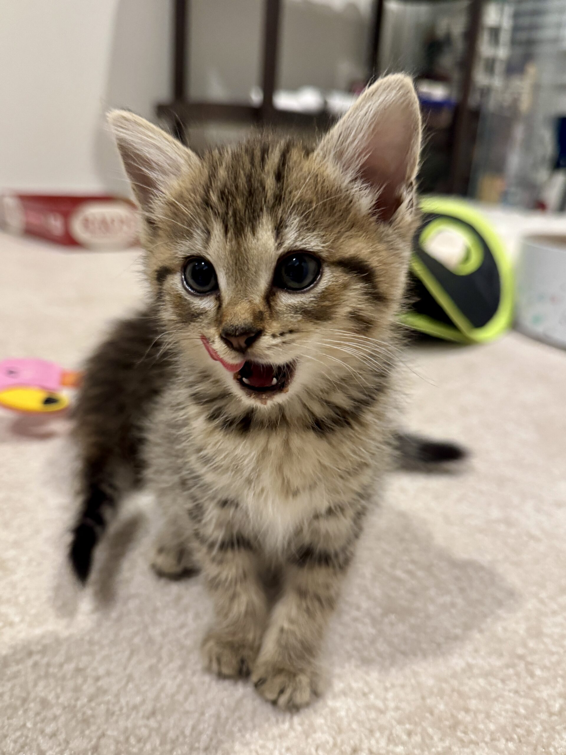 Lulu is a sweet and gentle kitten with a wonderful personality. She loves people and enjoys being around them, offering quiet and comforting companionship. Lulu is very friendly and gets along well with other cats, making her a great addition to multi-pet households. Her calm and affectionate nature makes her a perfect companion for anyone looking for a loving and easygoing cat. Lulu is ready to find a forever home where she can continue to share her warmth and kindness. If you are looking for a gentle, sociable, and sweet feline friend, Lulu would be a wonderful choice.