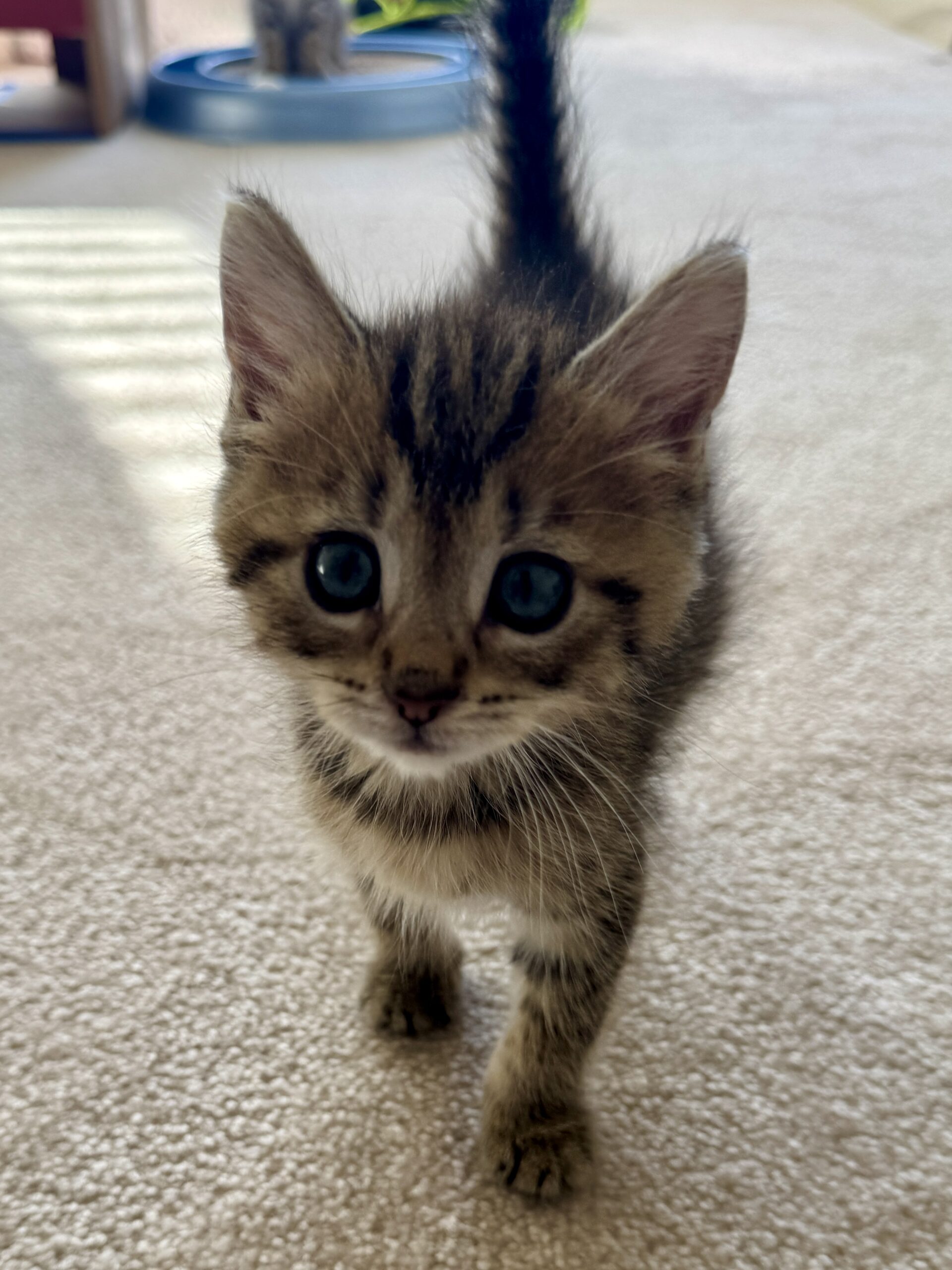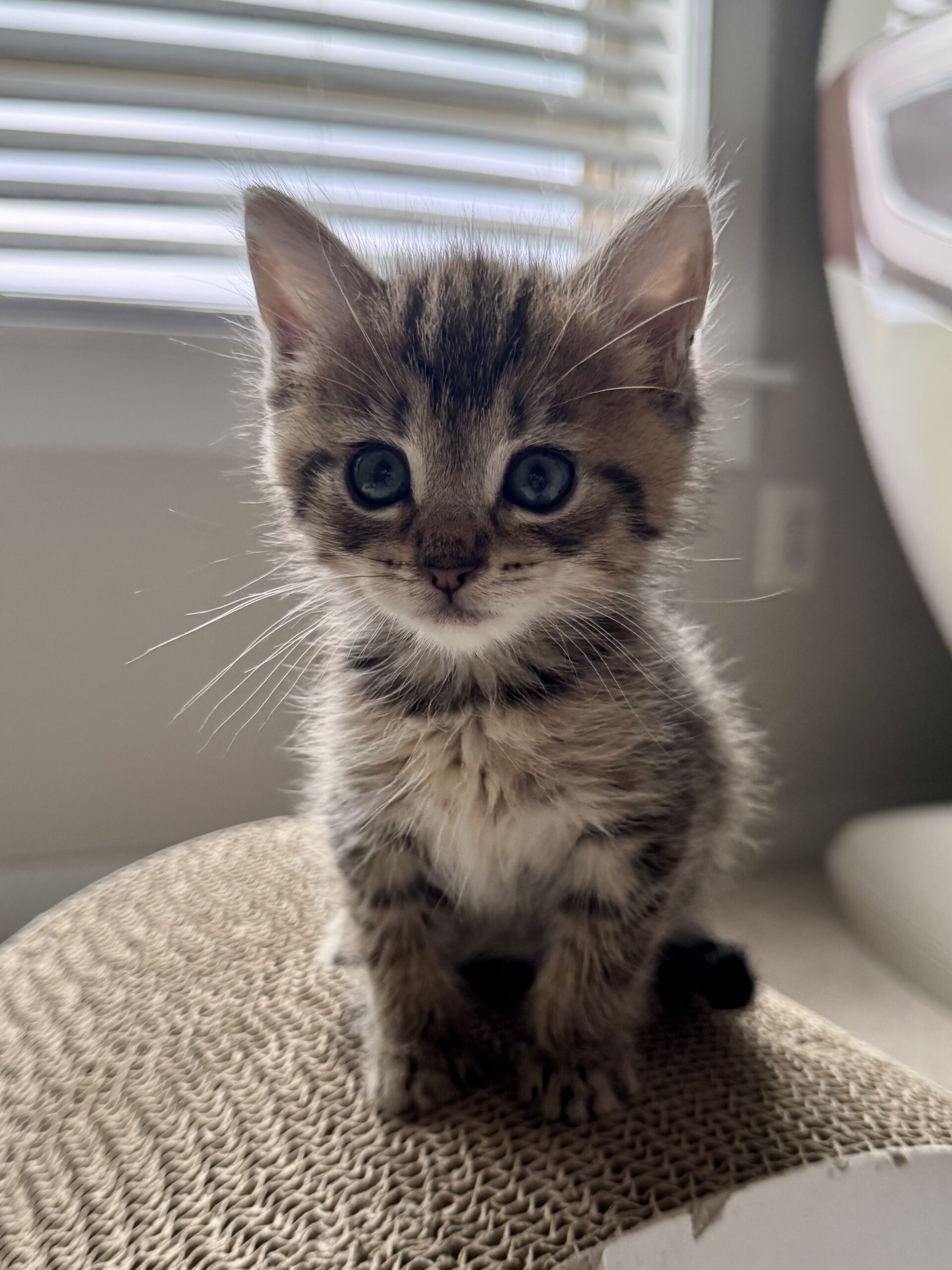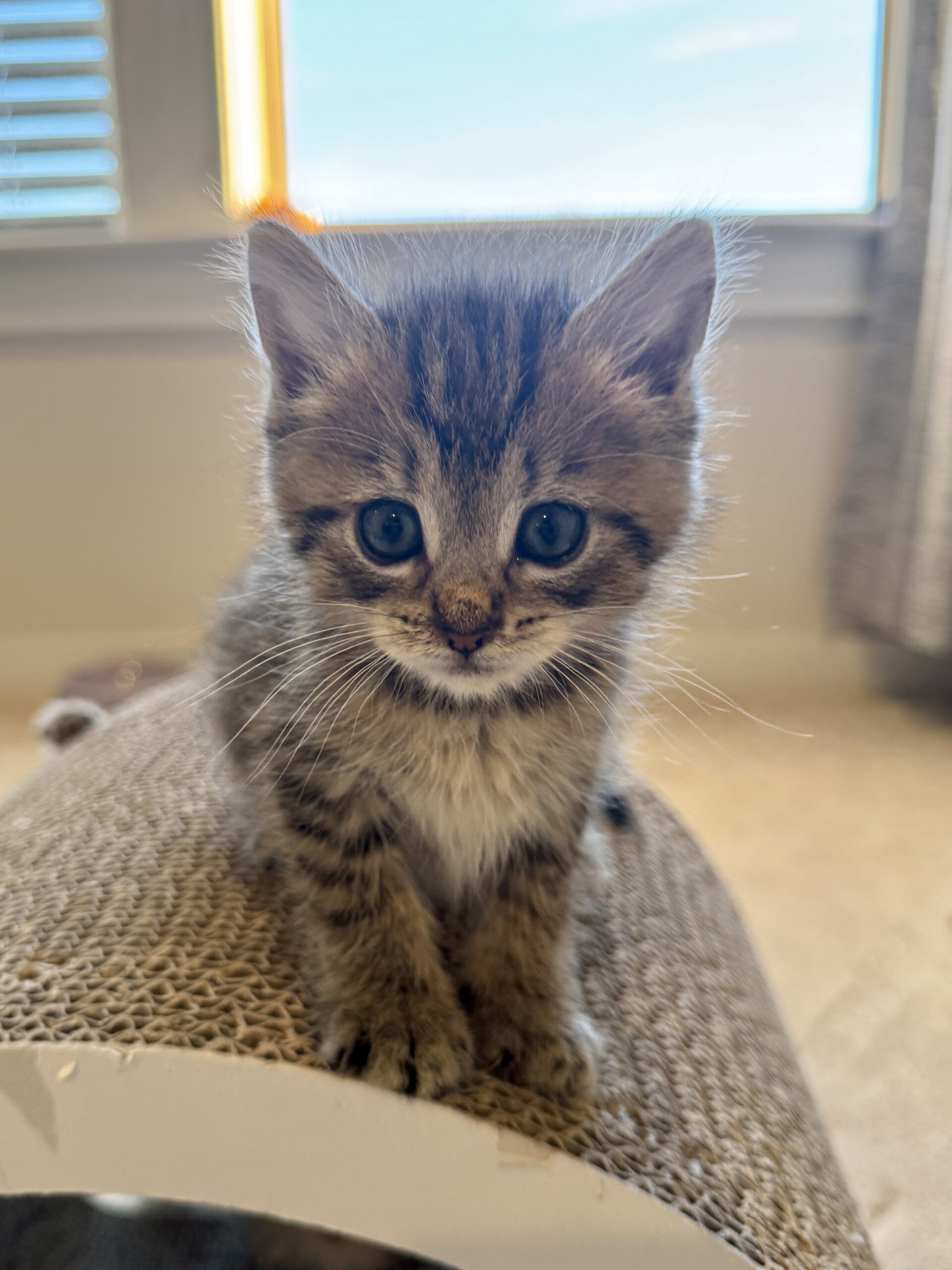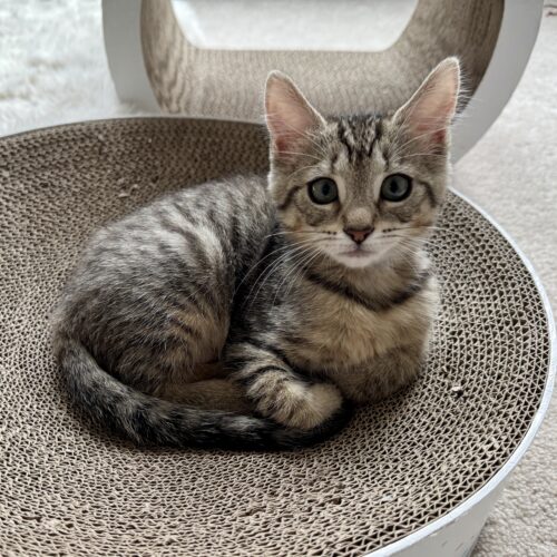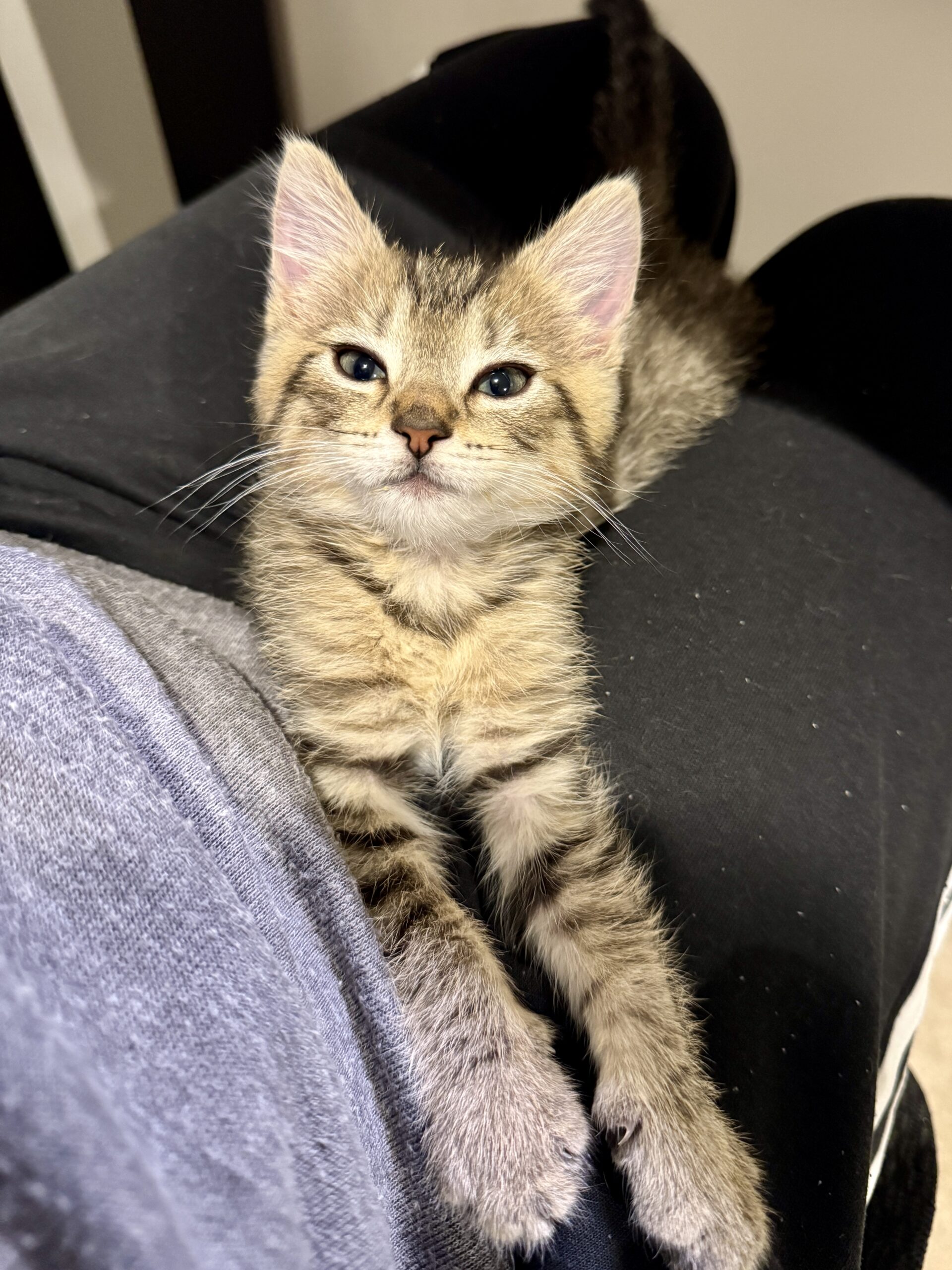 Lemon is the tiniest and sweetest kitten in her litter, and she has quickly become a favorite during her time with us. She loves to snuggle up by hopping right onto your lap and keeping you company. Lemon’s adorable, wobbly walk always brings a smile to everyone’s face. She is very friendly and gets along wonderfully with other cats, making her a great companion in any home with multiple pets. If you want a lovable, playful, and affectionate kitten who will brighten your days with her charm, Lemon is the perfect match.