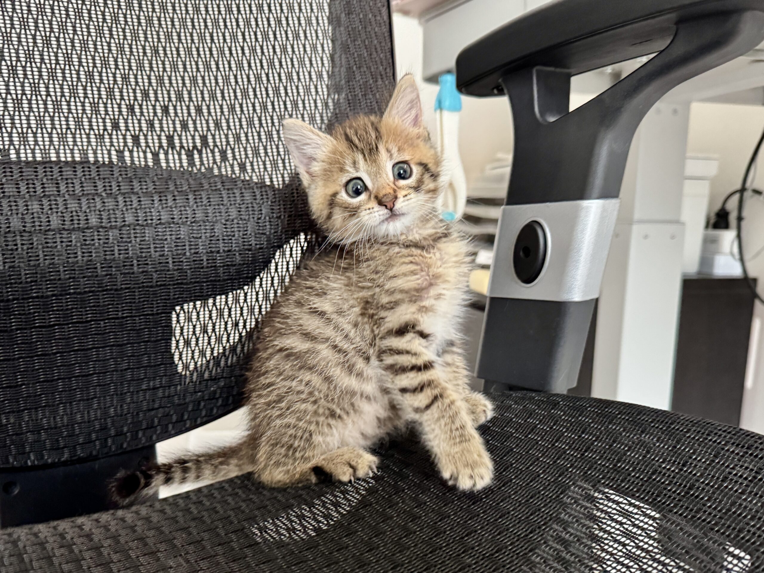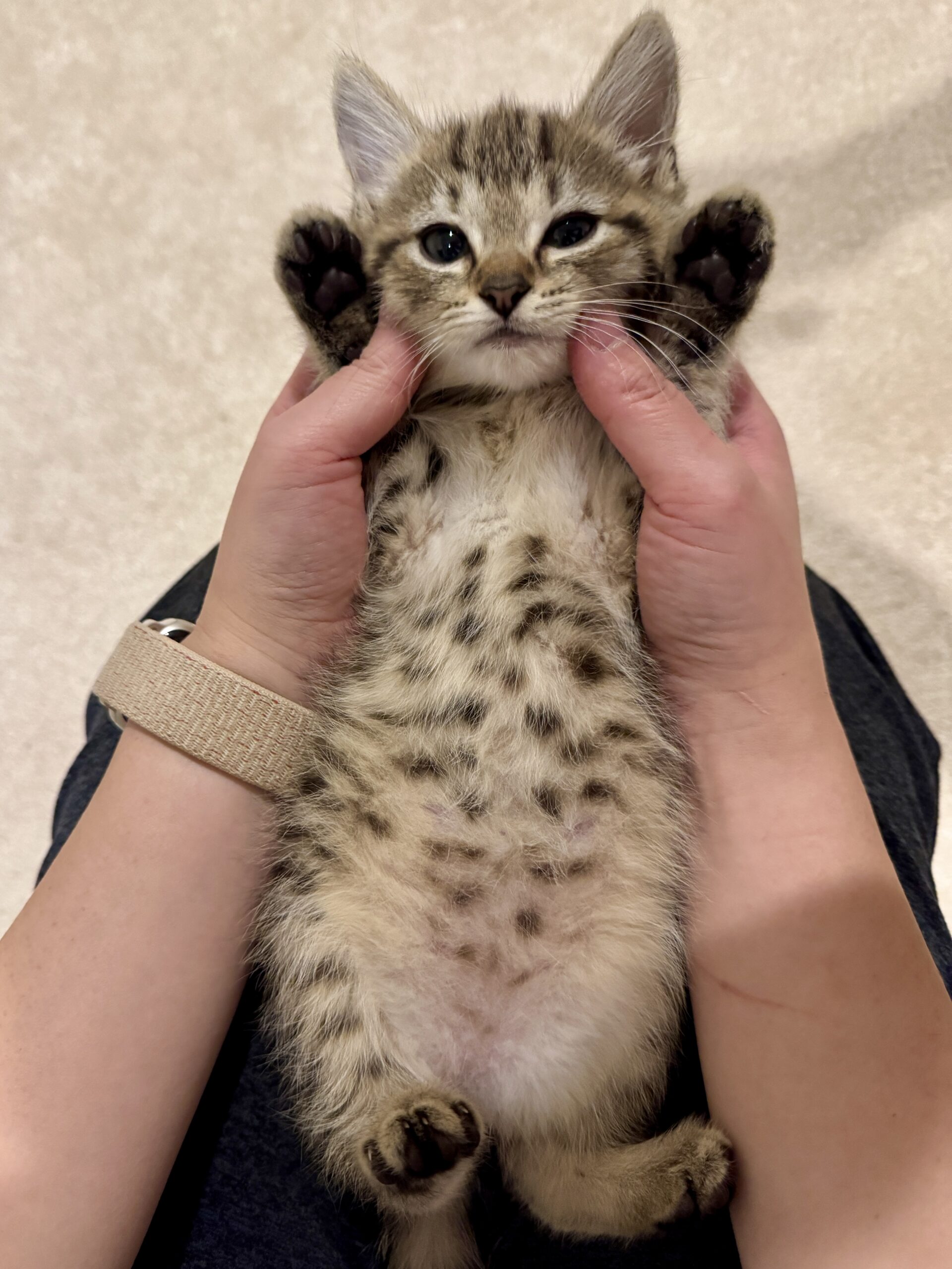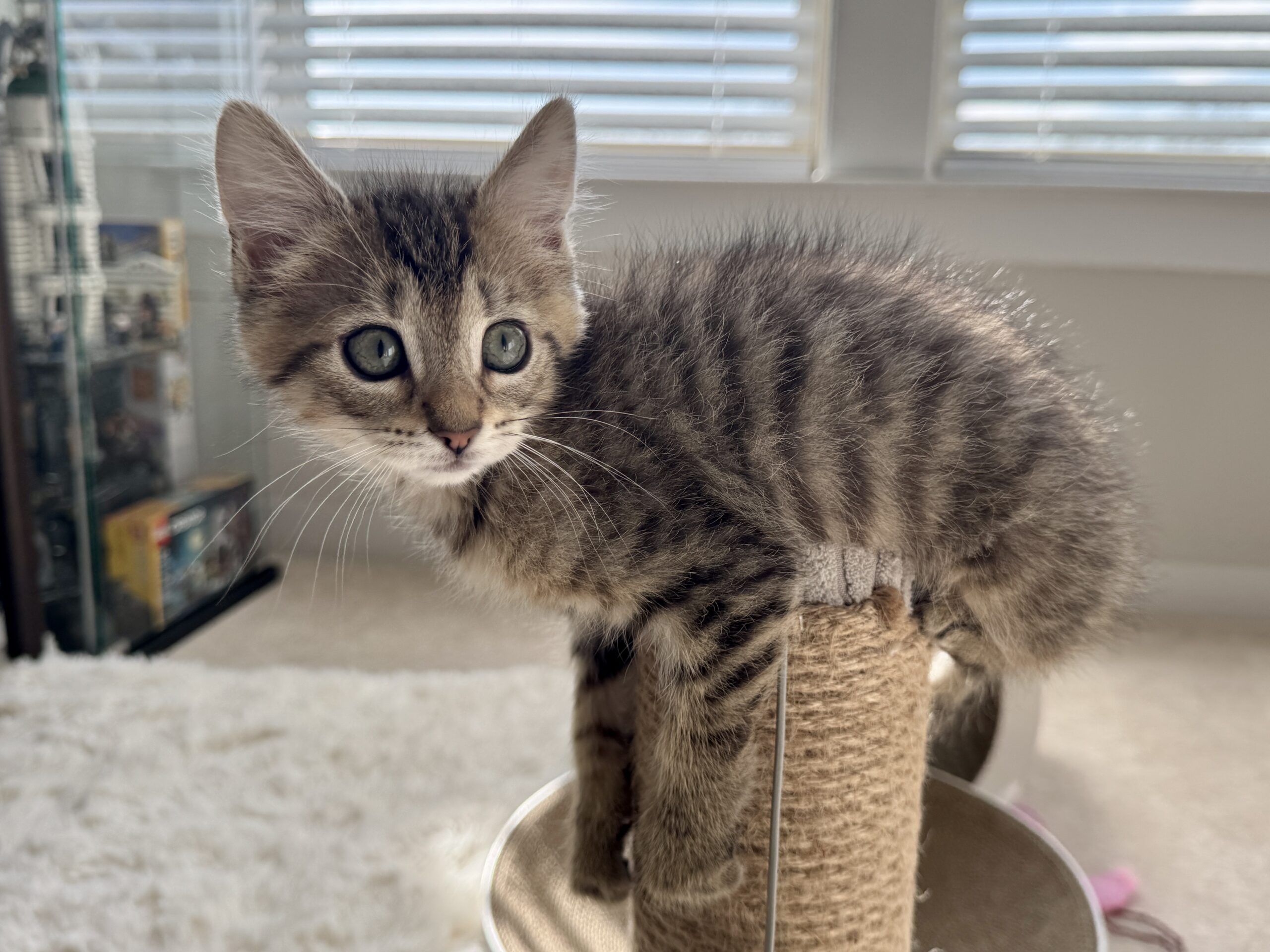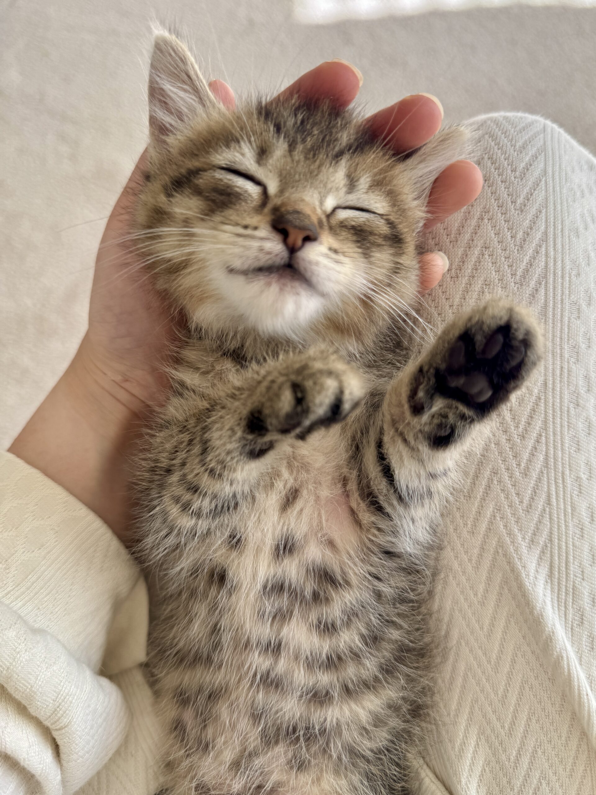 Lemon is the tiniest and sweetest kitten in her litter, and she has quickly become a favorite during her time with us. She loves to snuggle up by hopping right onto your lap and keeping you company. Lemon’s adorable, wobbly walk always brings a smile to everyone’s face. She is very friendly and gets along wonderfully with other cats, making her a great companion in any home with multiple pets. If you want a lovable, playful, and affectionate kitten who will brighten your days with her charm, Lemon is the perfect match.