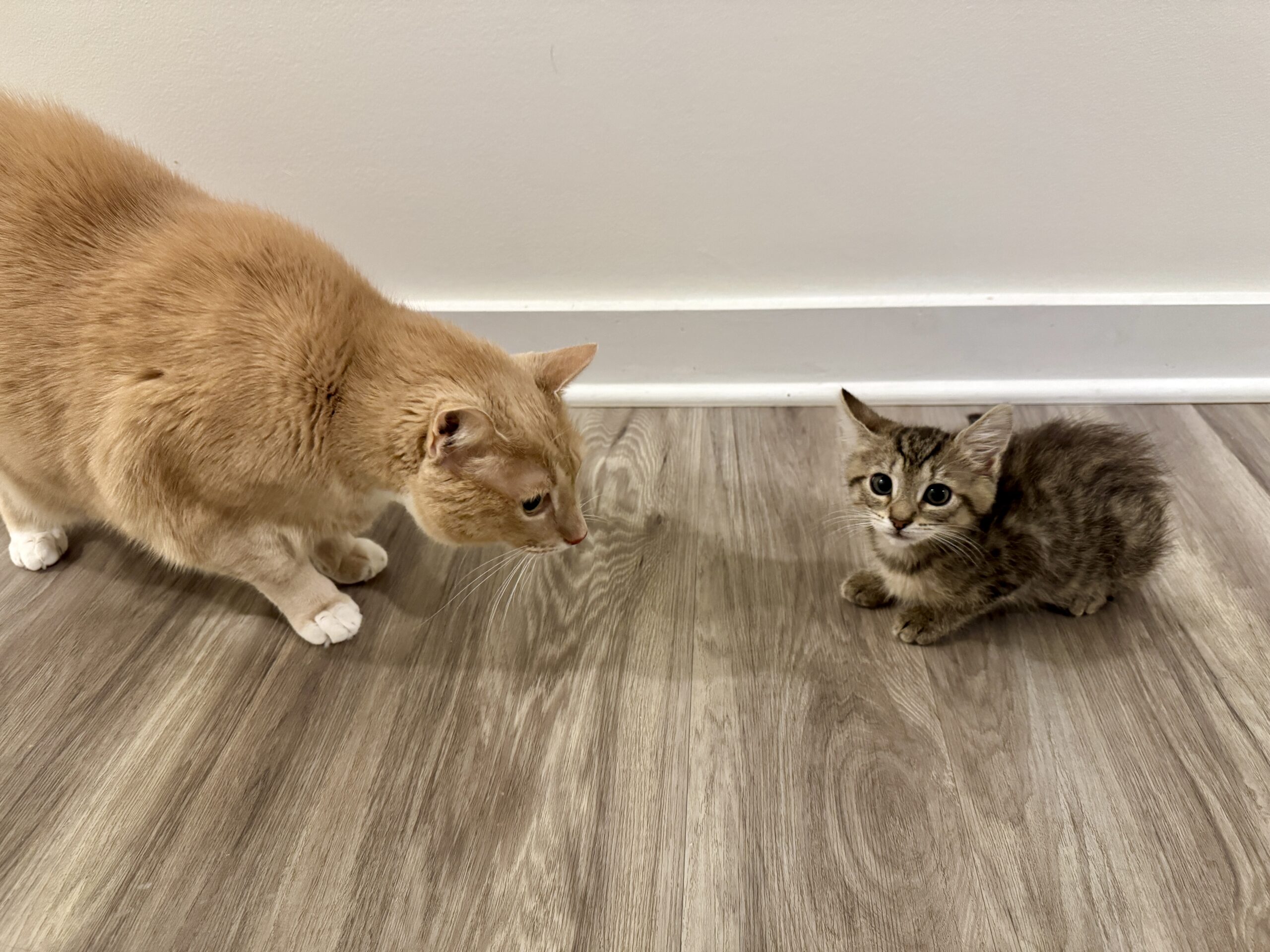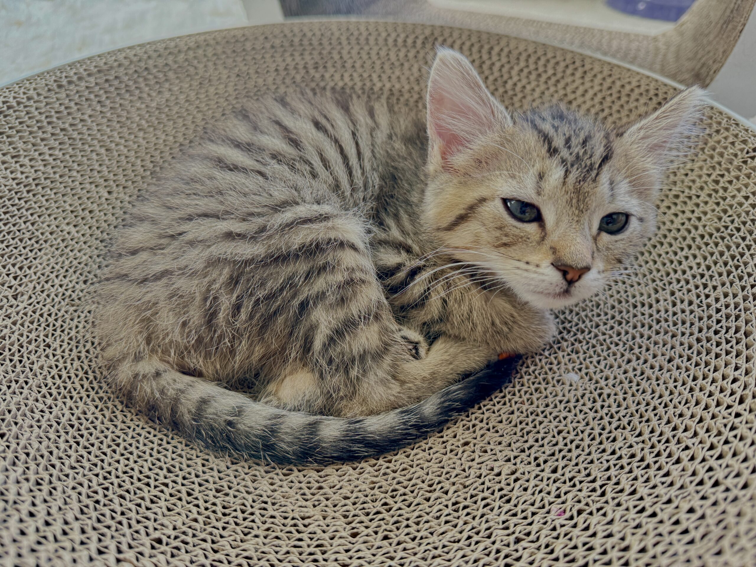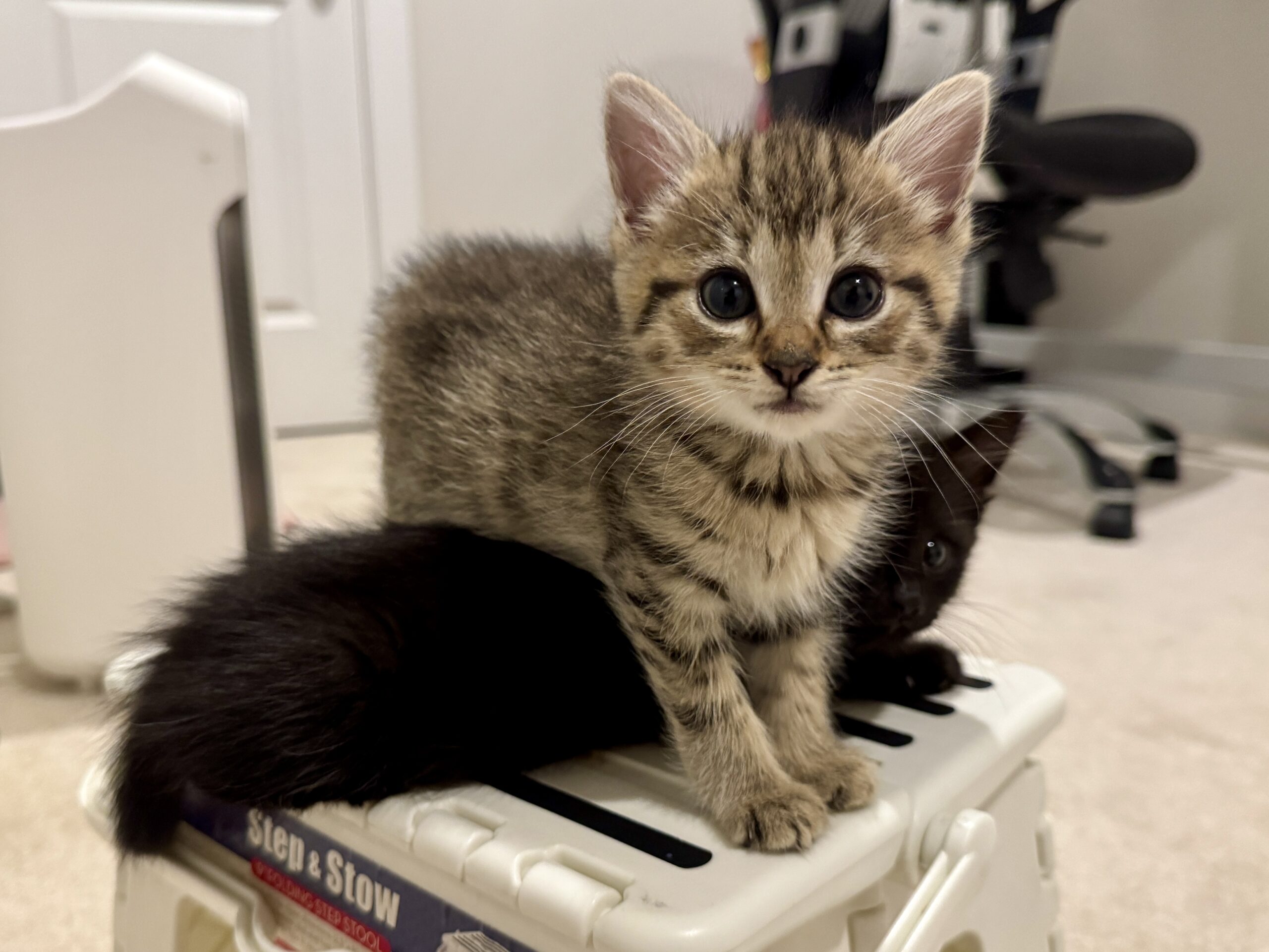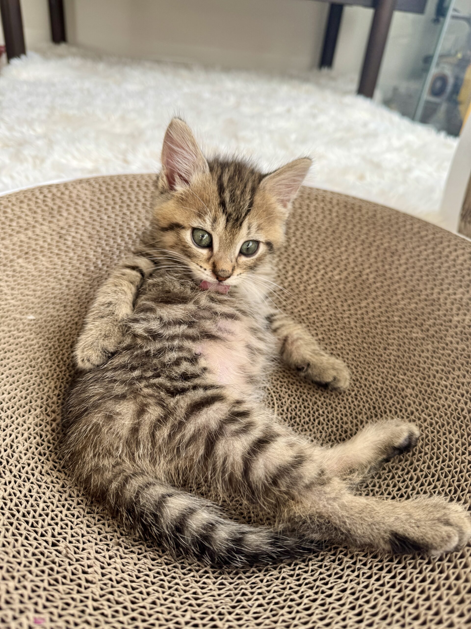 Lemon is the tiniest and sweetest kitten in her litter, and she has quickly become a favorite during her time with us. She loves to snuggle up by hopping right onto your lap and keeping you company. Lemon’s adorable, wobbly walk always brings a smile to everyone’s face. She is very friendly and gets along wonderfully with other cats, making her a great companion in any home with multiple pets. If you want a lovable, playful, and affectionate kitten who will brighten your days with her charm, Lemon is the perfect match.