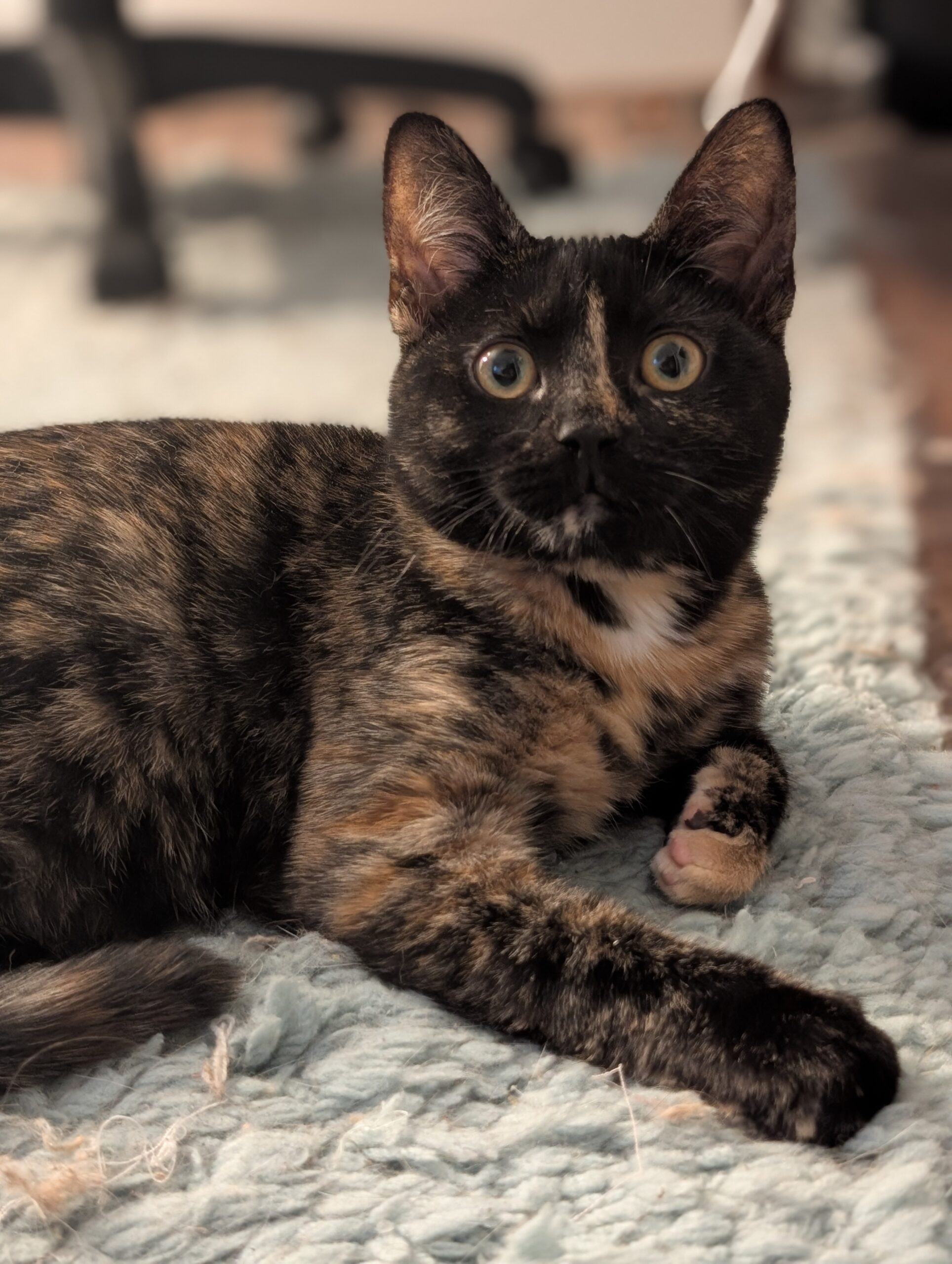Blossom saying hello and can we snuggle? Yes, I am curious and I love to play with my brother and sister. But I really, really, really like to snuggle the most. My favorite place to snuggle is with you under your blanket. That's why I'm irresistible. Who doesn't want a kitty to snuggle with under their blanket!?! Bonus - I just love all people, especially if they are willing to snuggle with me!