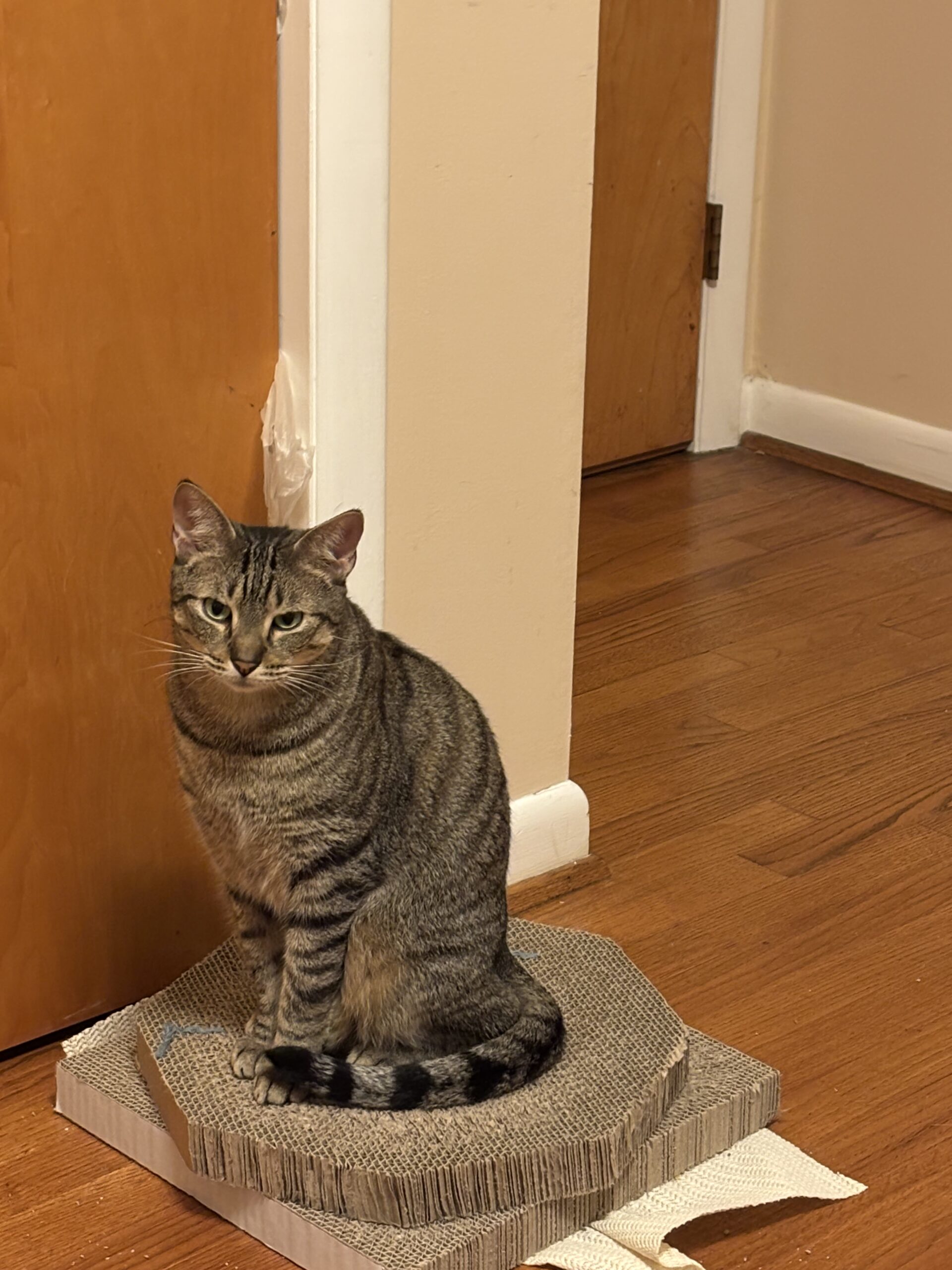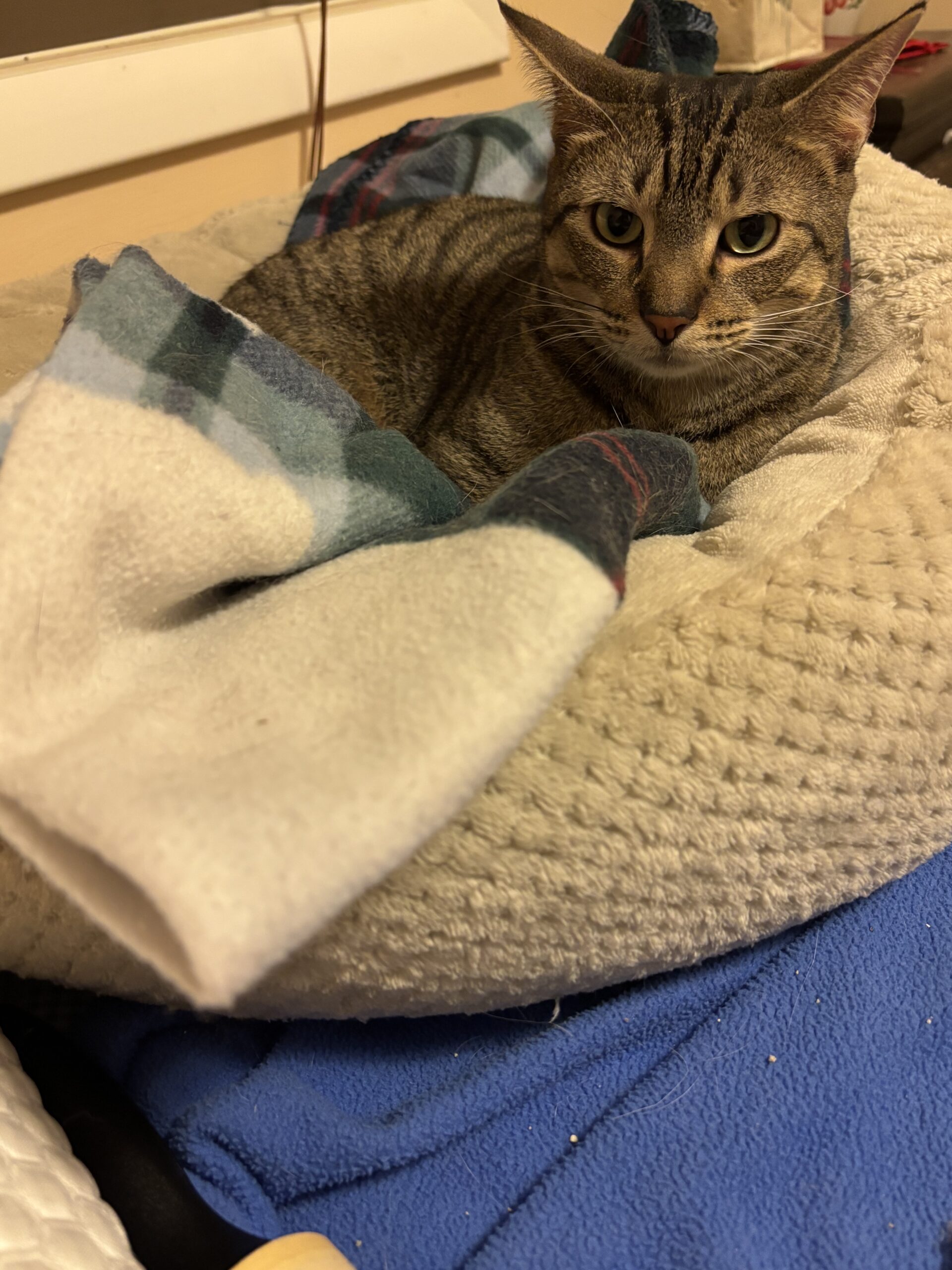 Hi, I’m Lenny — a 2-year-old gray tabby boy with a playful streak and a big, gentle heart. My name came from a Mario game character, and like him, I’m curious, brave, and fun! I’m being surrendered with my sister and best friend, Lola, because our person developed allergies after a new baby arrived.