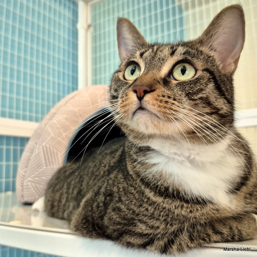 Hi, I’m Luci — a sweet and playful 2-year-old gray and white tabby. My person had to move to a Memory Care Facility, so now I’m hoping to find a new family to love.