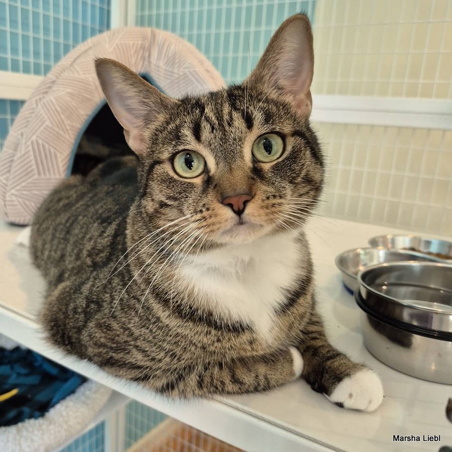 I’m a gentle girl who enjoys playtime with toys, especially string toys, boxes, and bags. I’m also a curious explorer who loves peeking into open cabinets and finding cozy hideaways. Tall cat trees near a sunny window are my favorite perch for birdwatching and daydreaming.