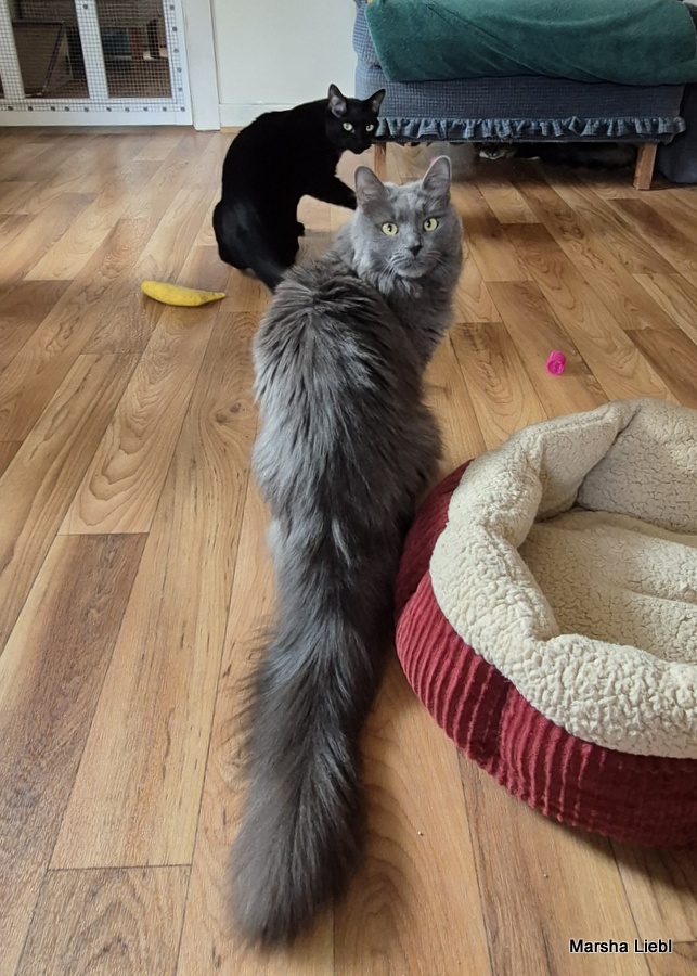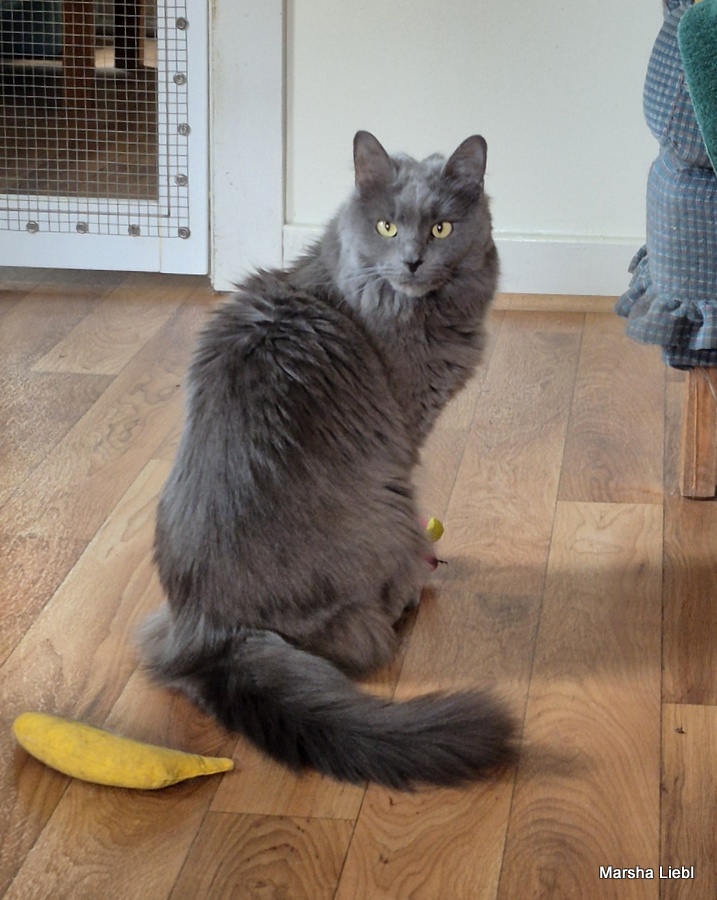 I’m playful and a little mischievous. I love bringing you “gifts” — toys, socks, and even random clothing items — just to let you know I’m thinking of you. Sometimes I’ll meow dramatically while carrying them, and my voice can range from “monkey chatter” to something that sounds like I’m saying “mom.” I’m also a fan of hide-and-seek, especially if there are empty boxes around. And yes… I do have a soft spot for licking plastic. Don’t ask me why, it’s just my thing.