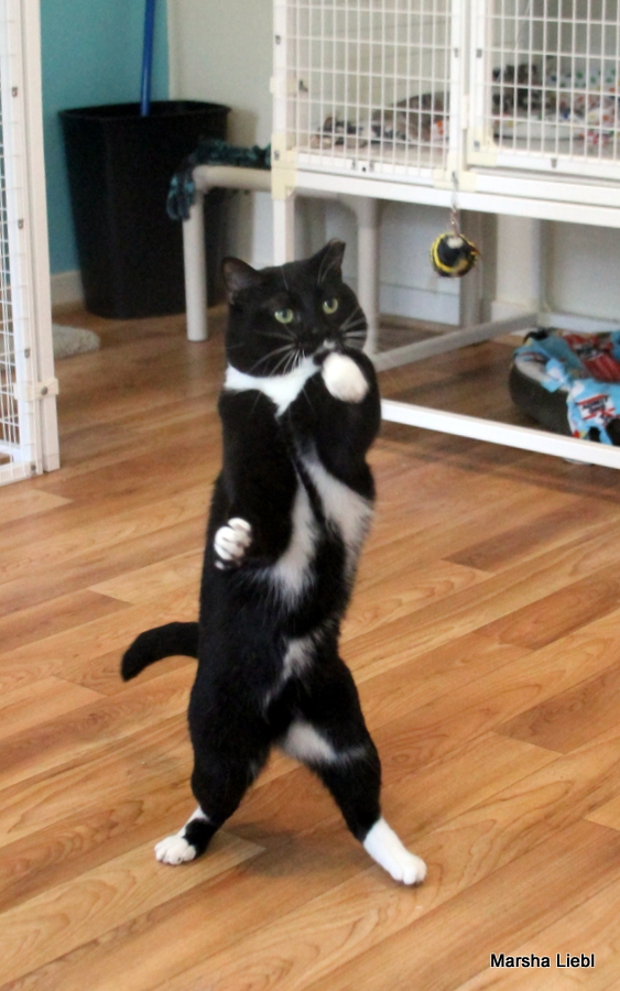 Hi, I’m Mojo—a two-year-old tuxedo gentleman with a soft “me-ow” and a big heart. I may start off a little shy, but once I get comfortable, my playful side comes out! I love batting toy mice across the room and chasing string like it’s my job. I’m especially active at night, so if you hear zoomies after dark—that’s just me living my best life.