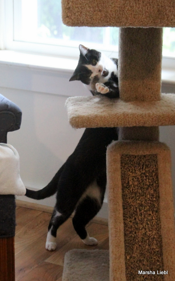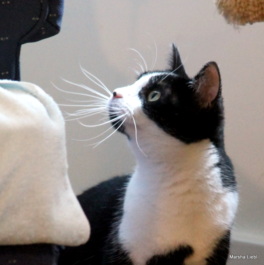 I’m not big on being picked up, but I won’t put up a fight. I’m more of a “play with me, watch me be silly, then let me do my own thing” kind of cat. I’m quiet (my purr is nearly silent!) and independent, but I love knowing you’re nearby—and yes, I’ll meow when I hear you wake up, just to say HI!