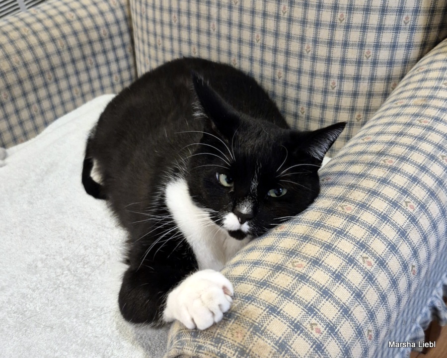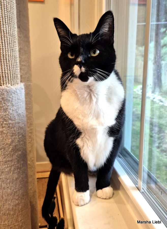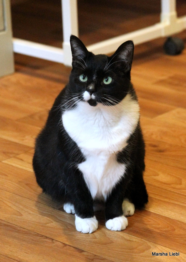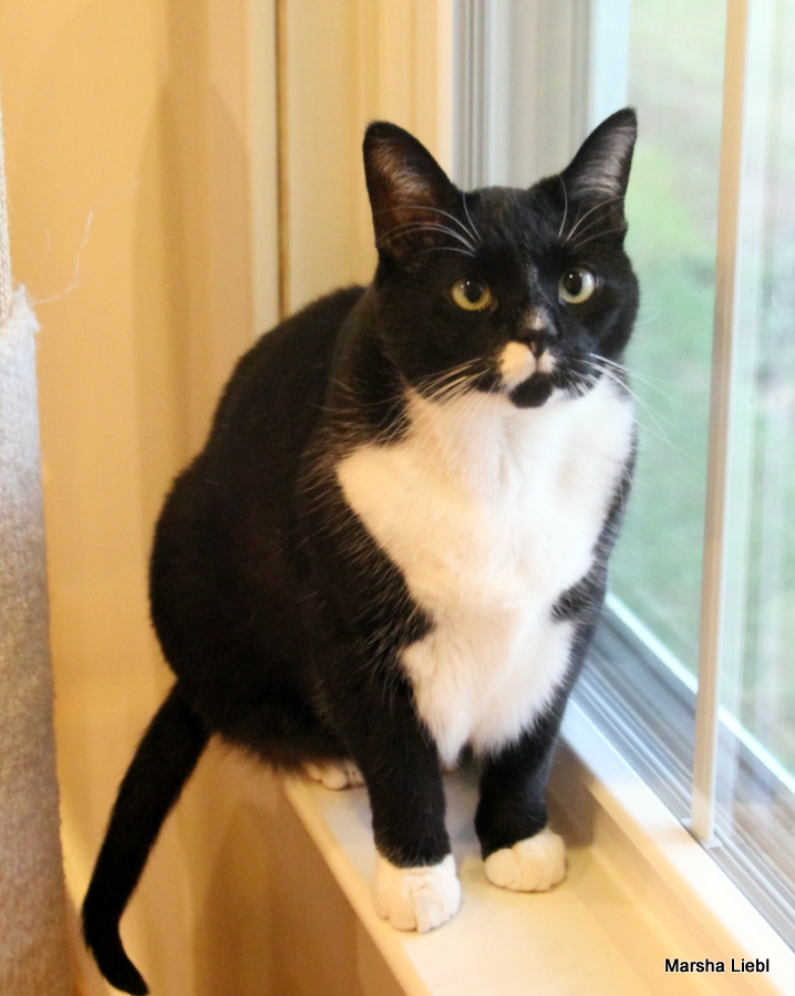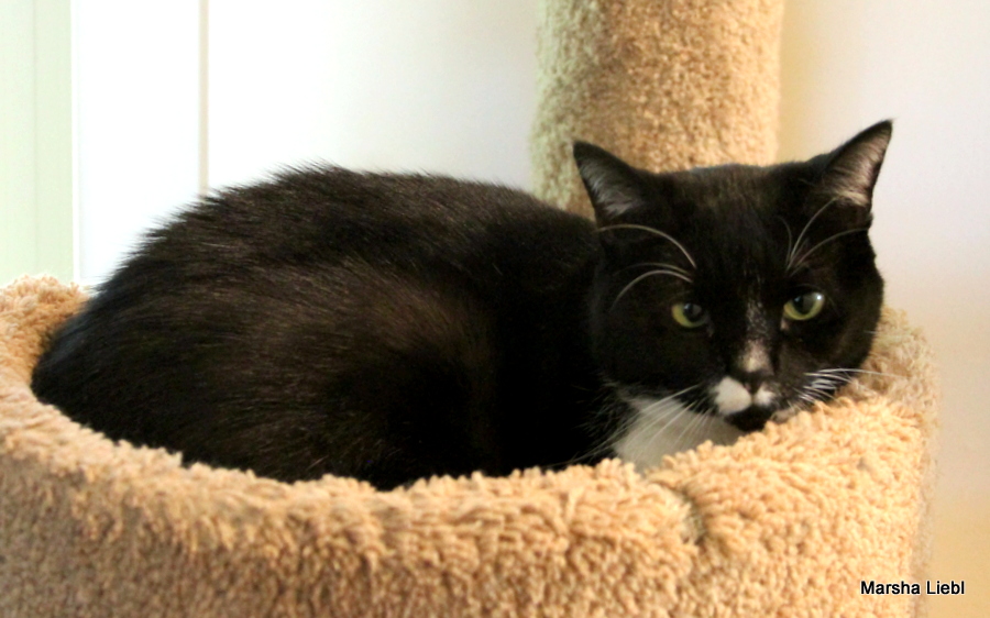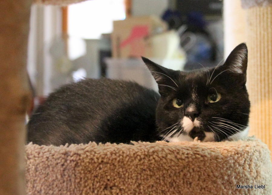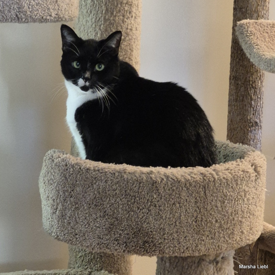 Hello! I am Pepper, a four-year-old black and white tuxedo girl who has made the difficult transition from my street life of my early 2 years to the better life of a pampered indoor girl. I am learning to trust the humans in my life now but sometimes I still forget. What that means is that if I am taken unaware or startled, I might swat and hiss very convincingly but as I have become more comfortable in my foster home, I am getting more used to things and am finding that I don’t need to behave this way so much.